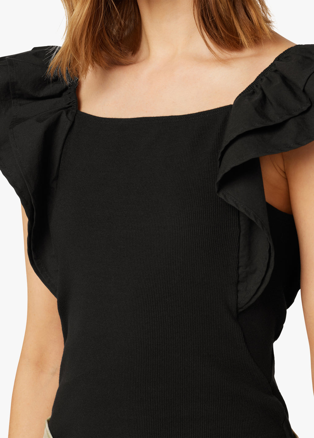 A tank that's sure to create a flutter. With ruffle detailing and a flattering fit, this tank will add some flare to your favorite jeans or summer shorts.