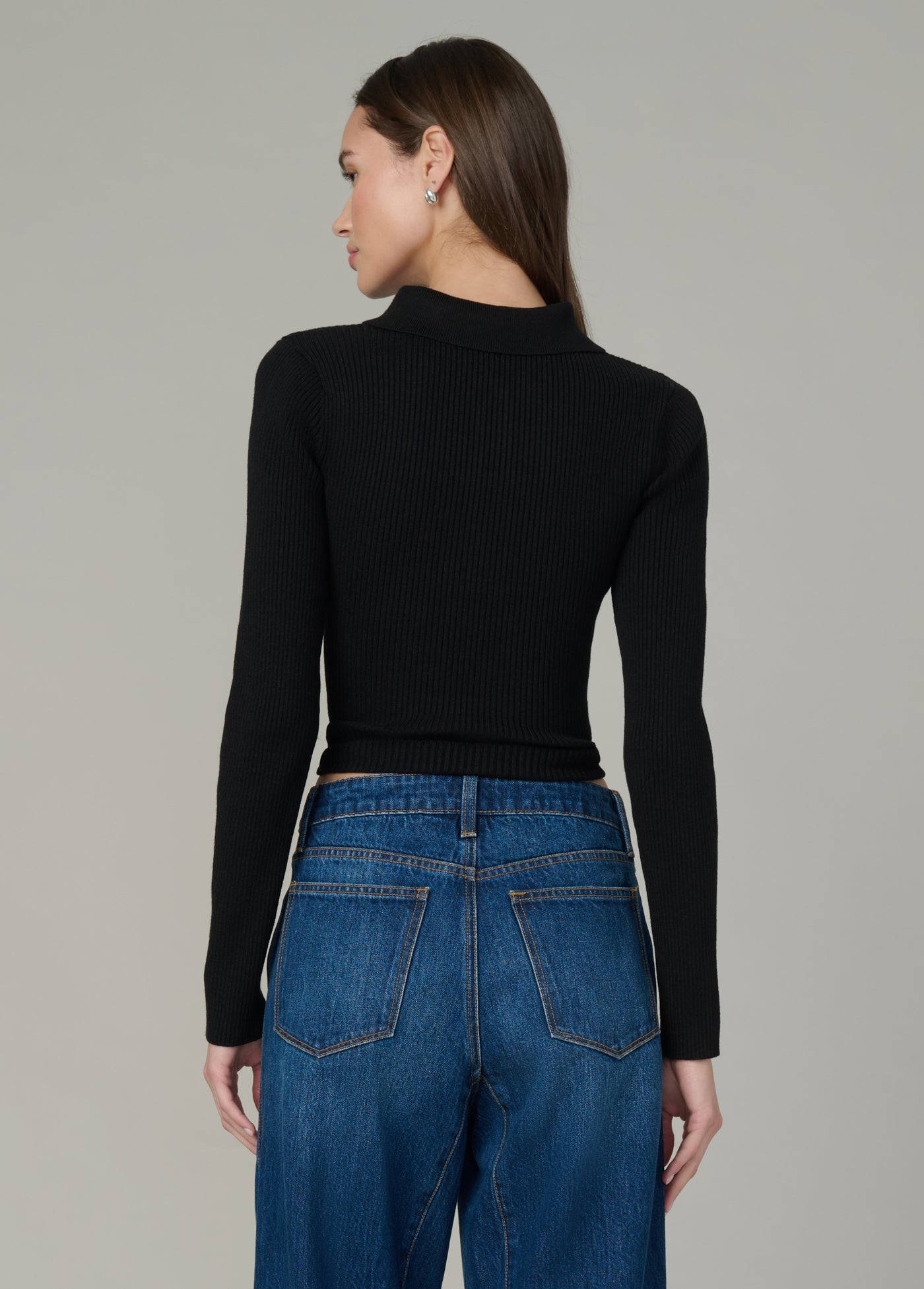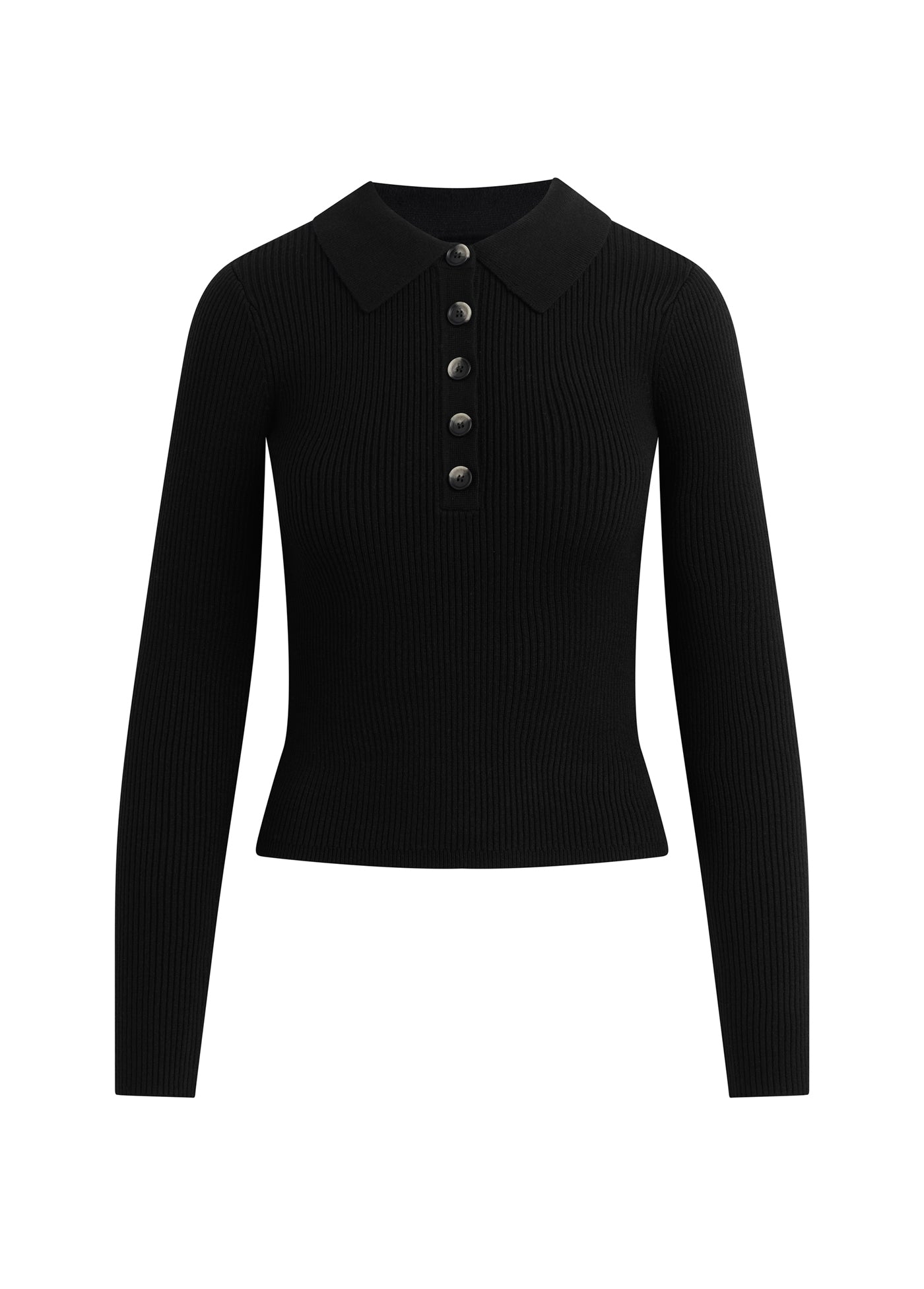 A classic take on a polo, elevated with a rib, buttery-soft yarn and contrast buttons.