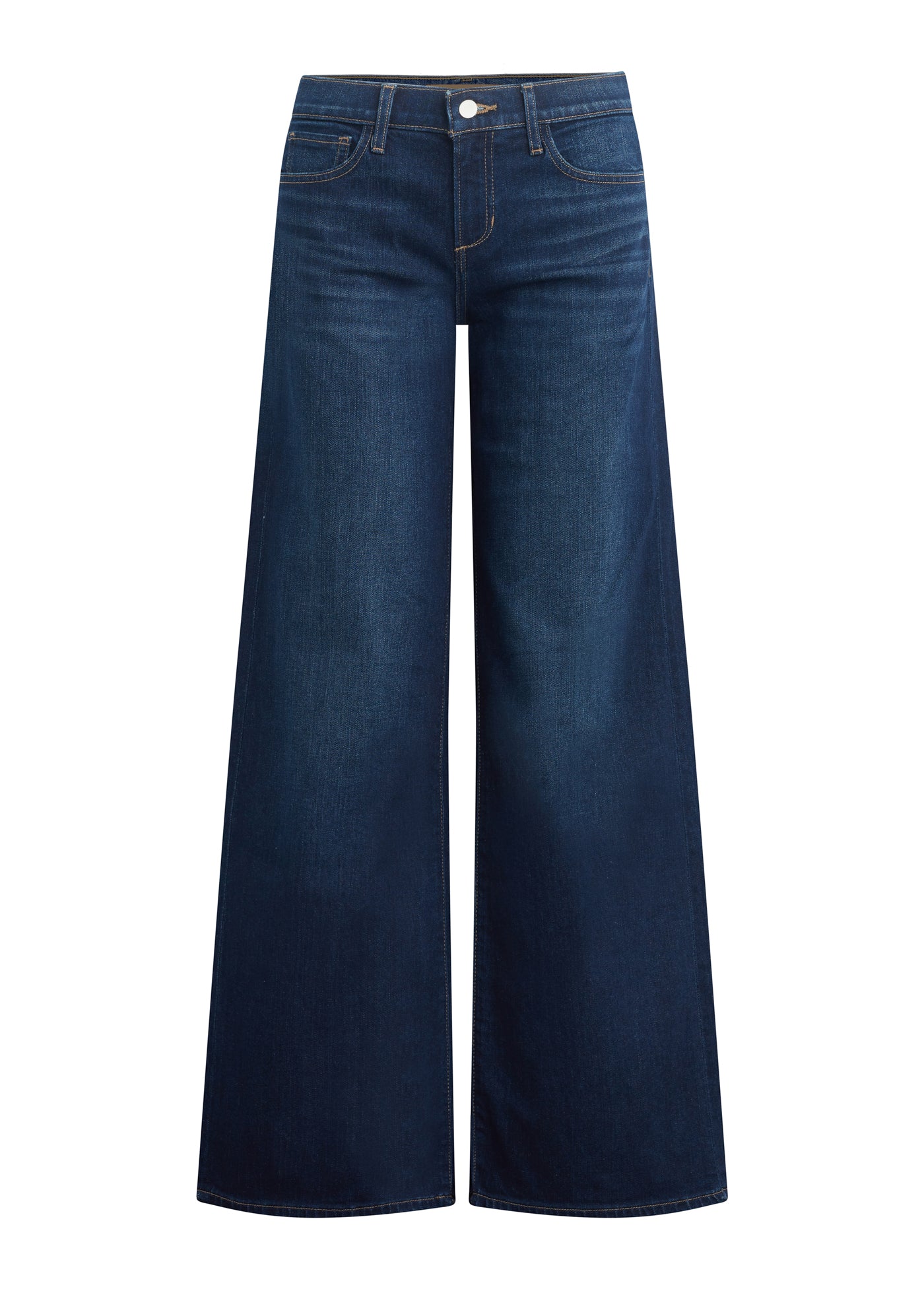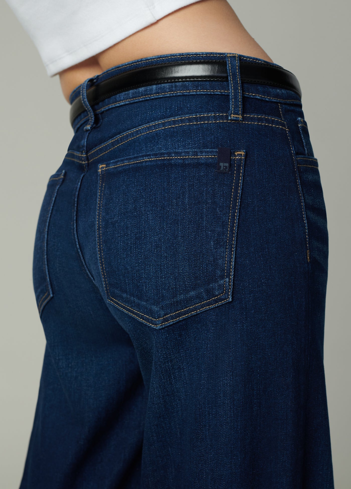 Slim fit through the waist and hips with a high rise and wide leg that hits at the ankle.