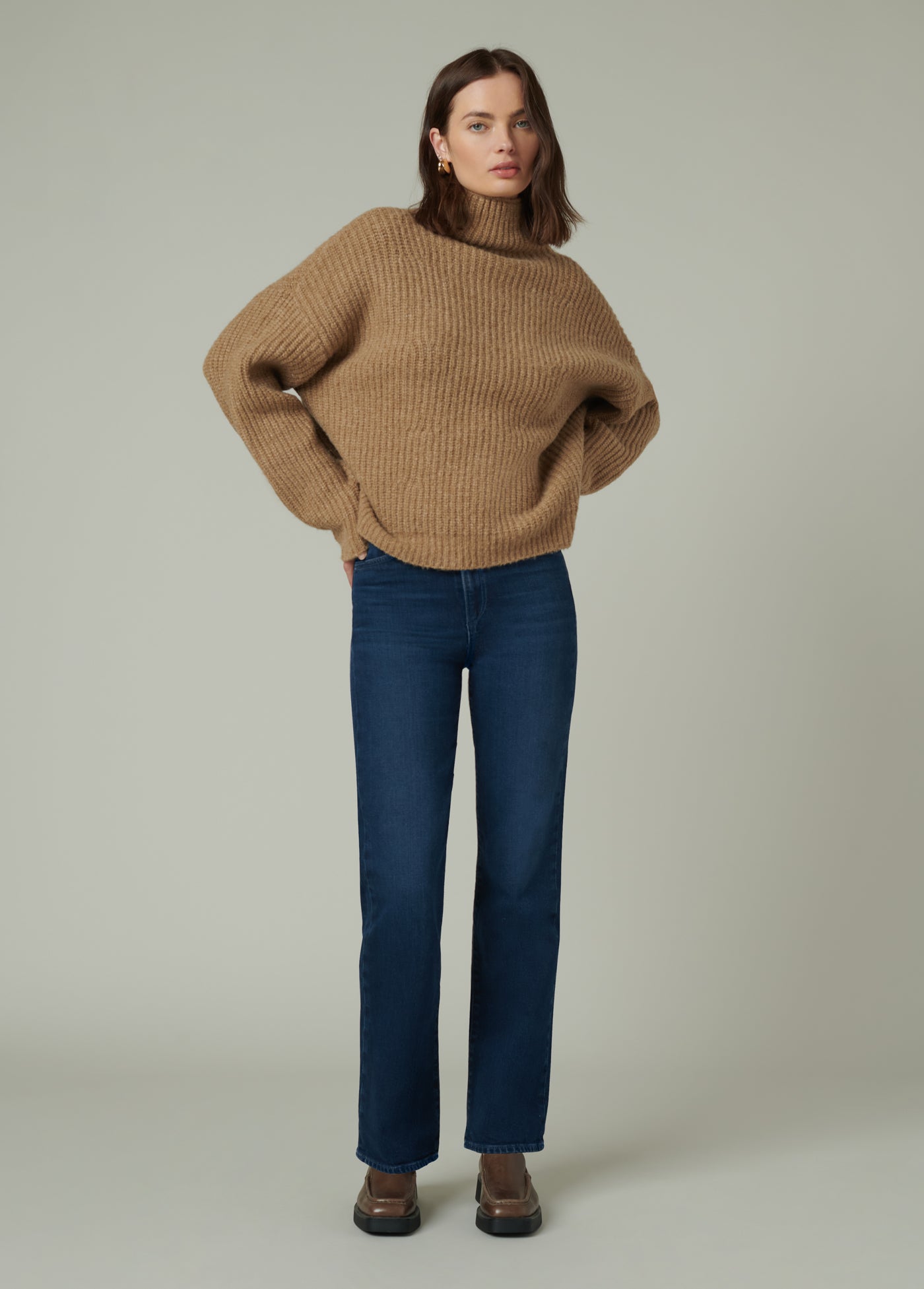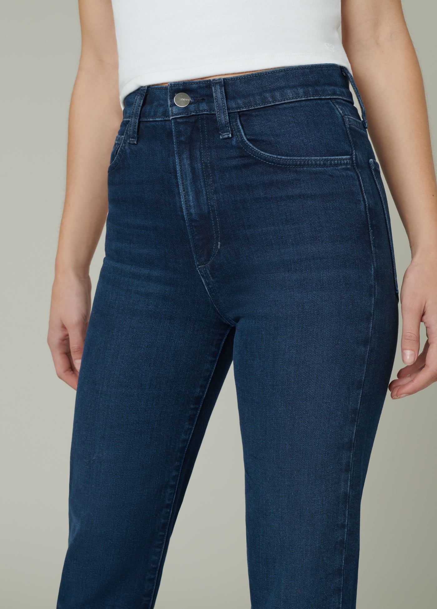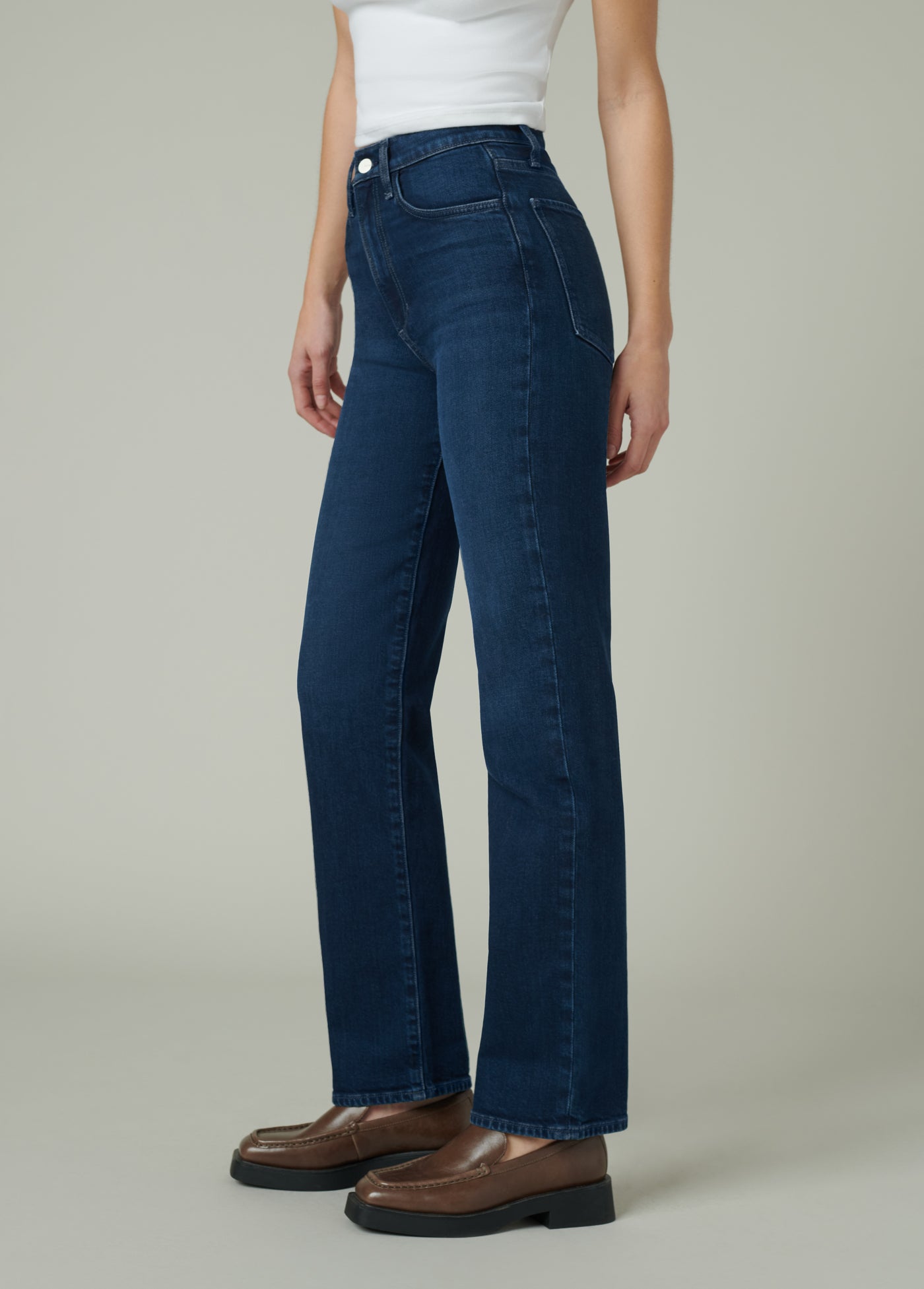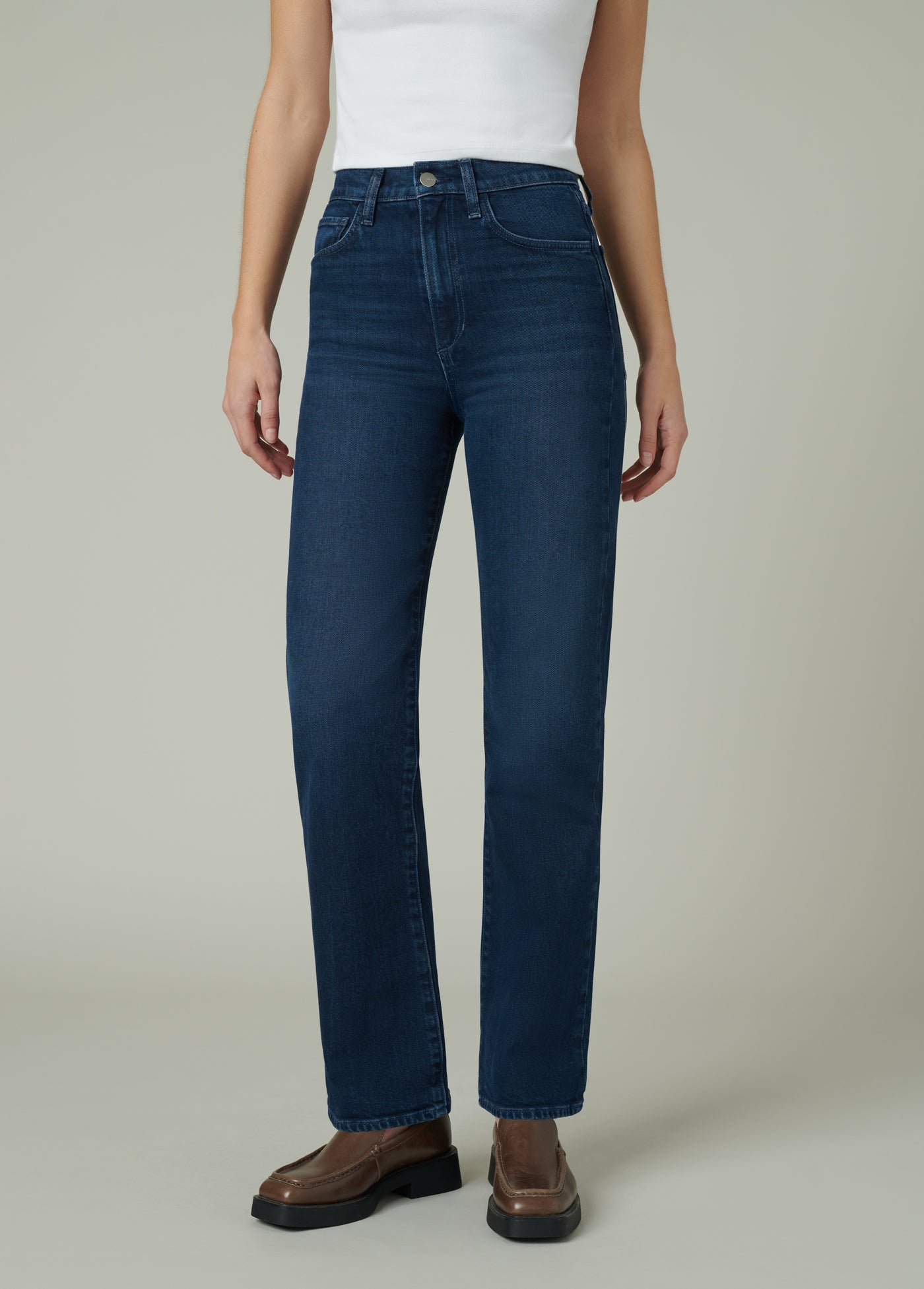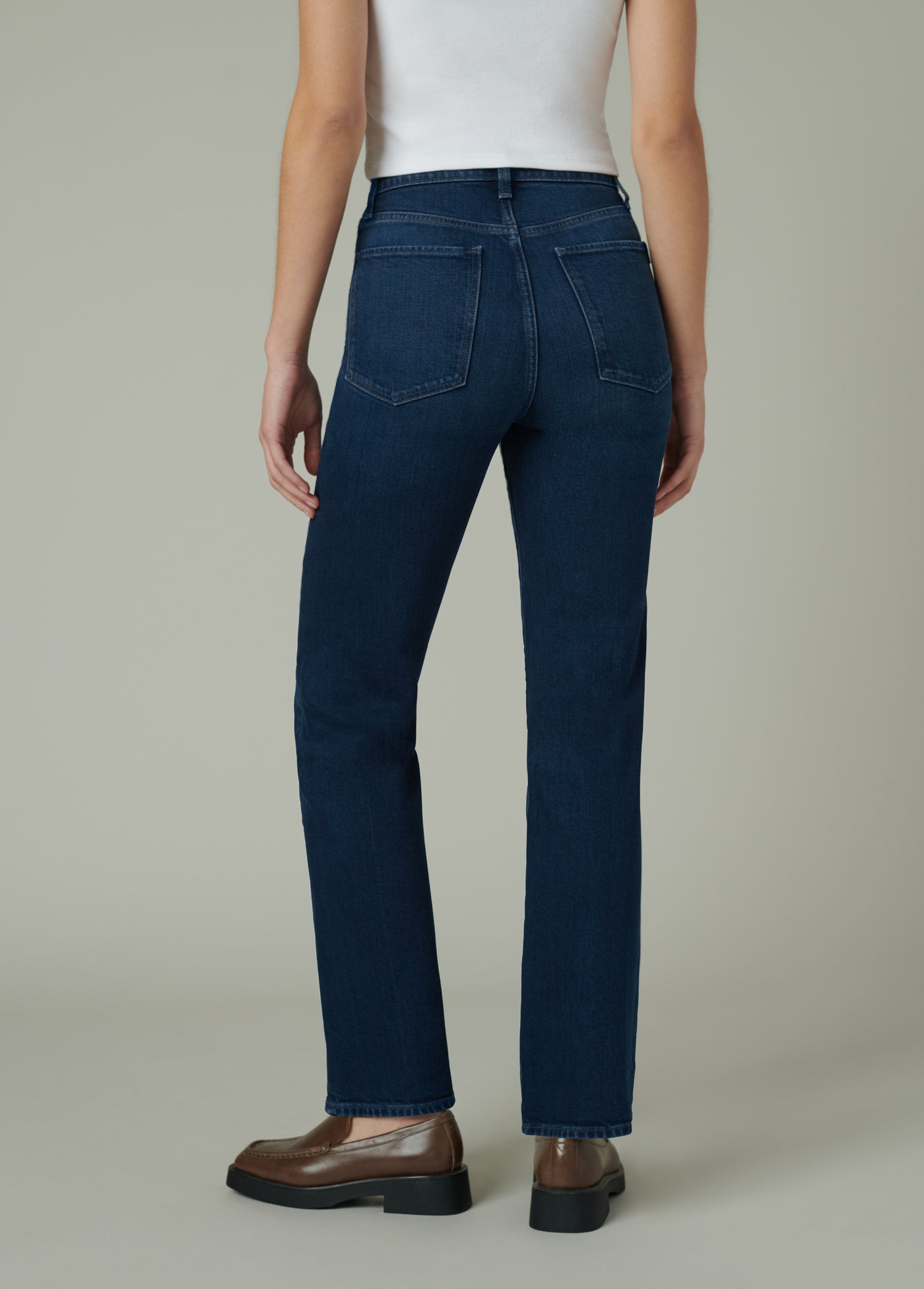 Slim fit through the waist and hips with a high rise and full-length straight leg.