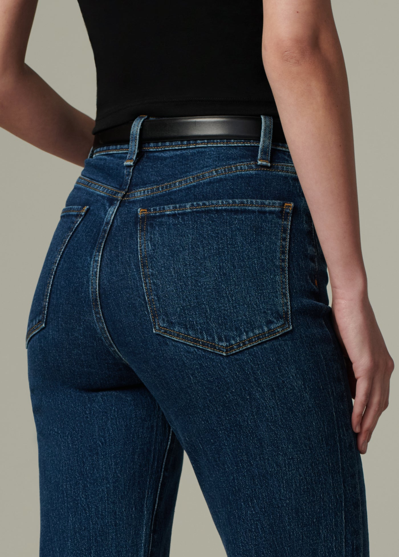 Meet The Margot High Rise Straight- the epitome of timeless style and modern comfort. This classically charming straight-leg is designed with a flattering high-waisted silhouette that compliments every body type. Cut in a rich dark wash, First Step, this pair combines attitude and glamour with every wear.