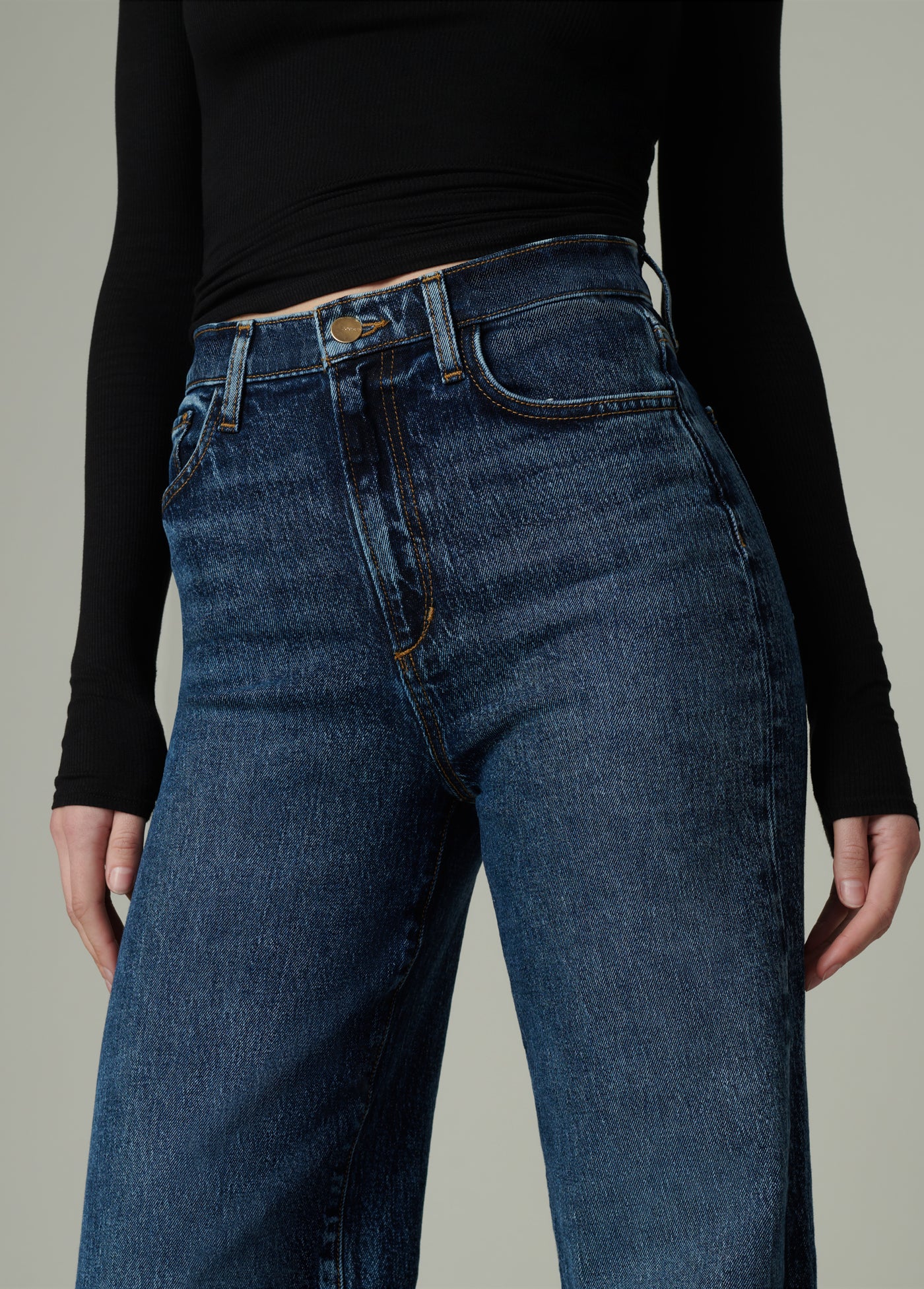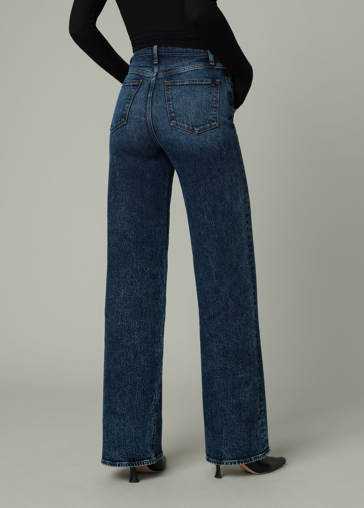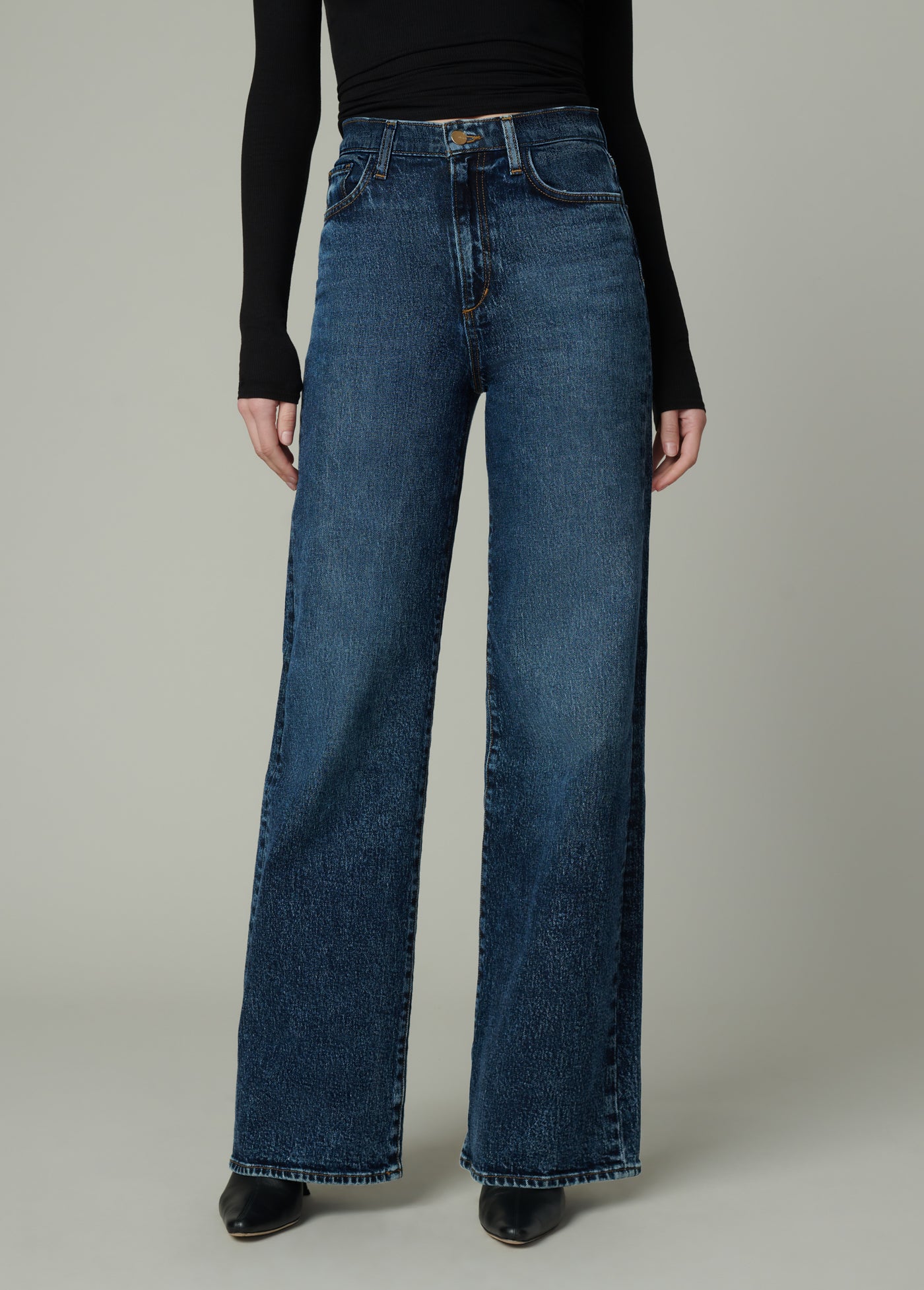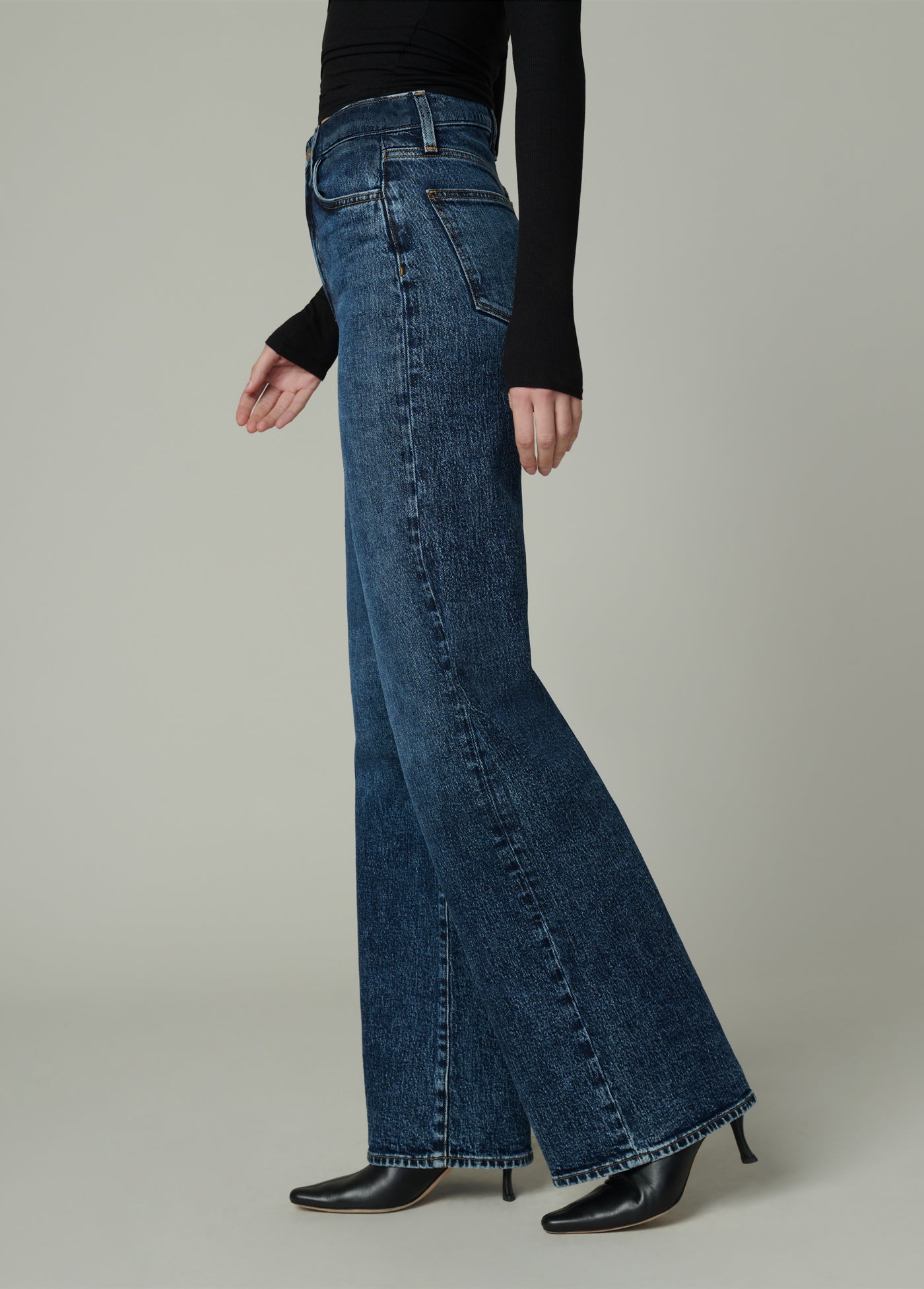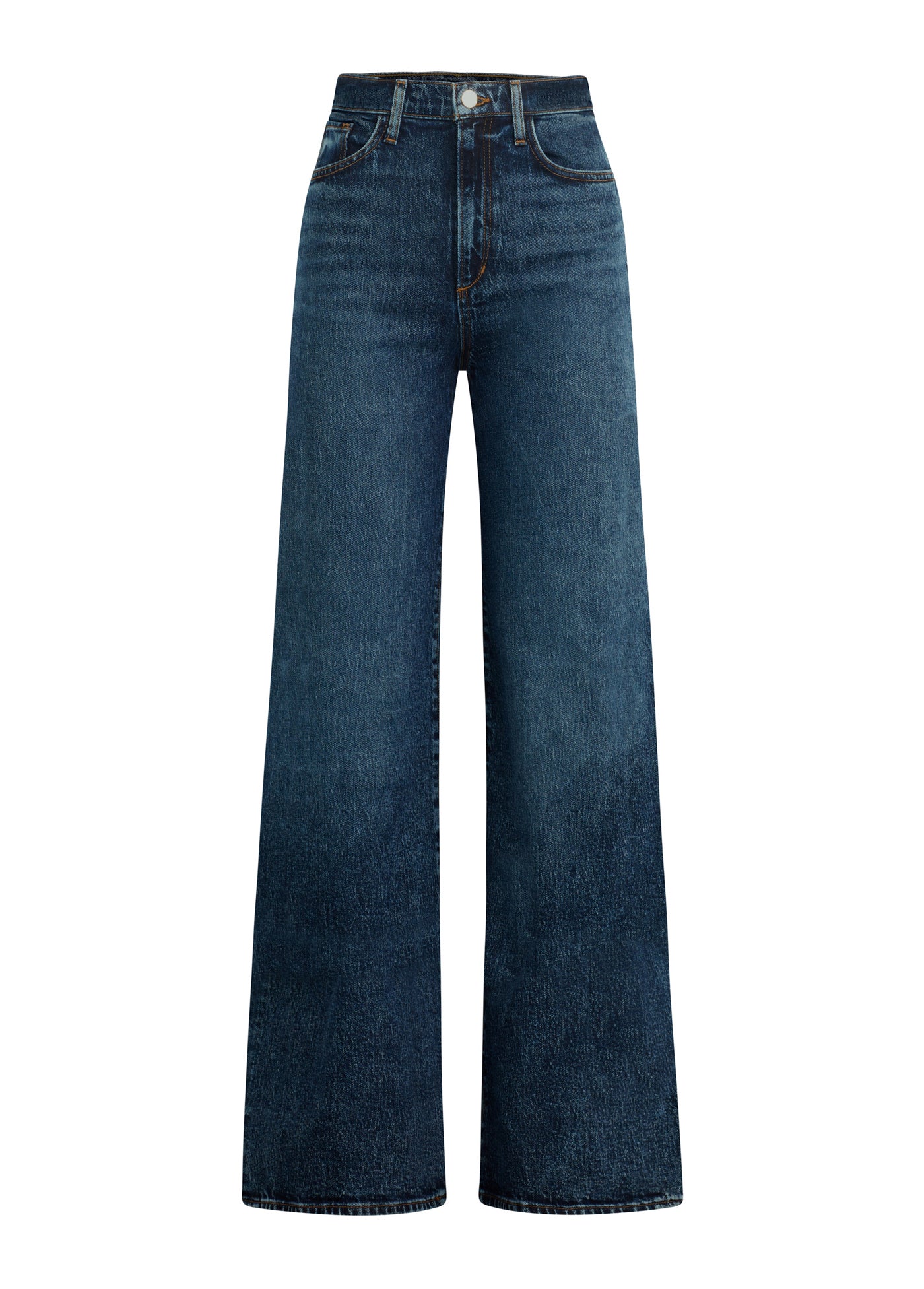 Slim fit through the waist and hips with a high rise and a full-length wide leg.