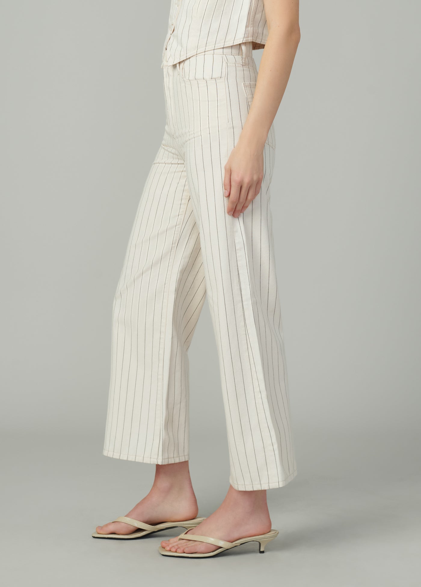 A high rise and slim fit through the waist and hip that hits at the ankle.