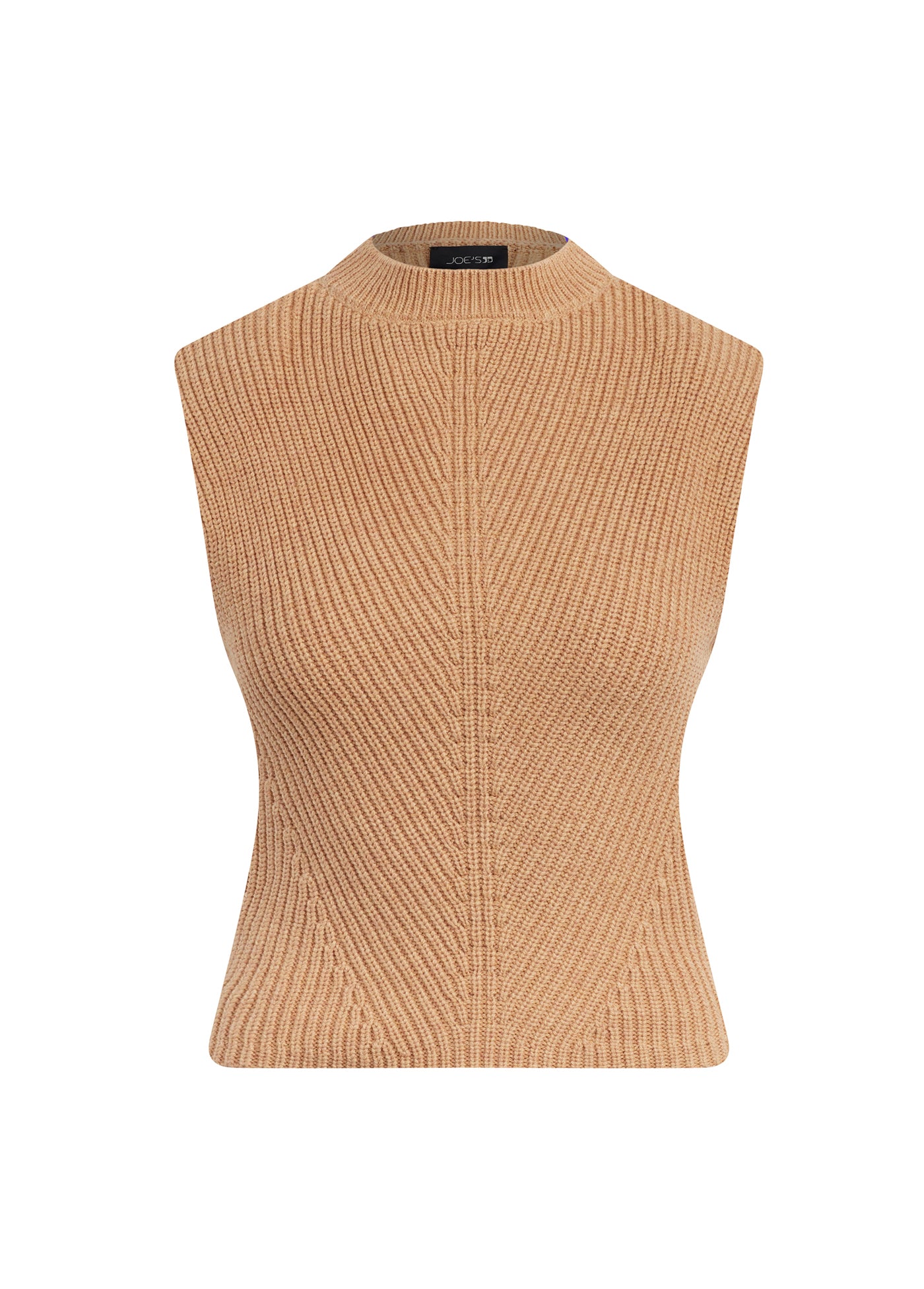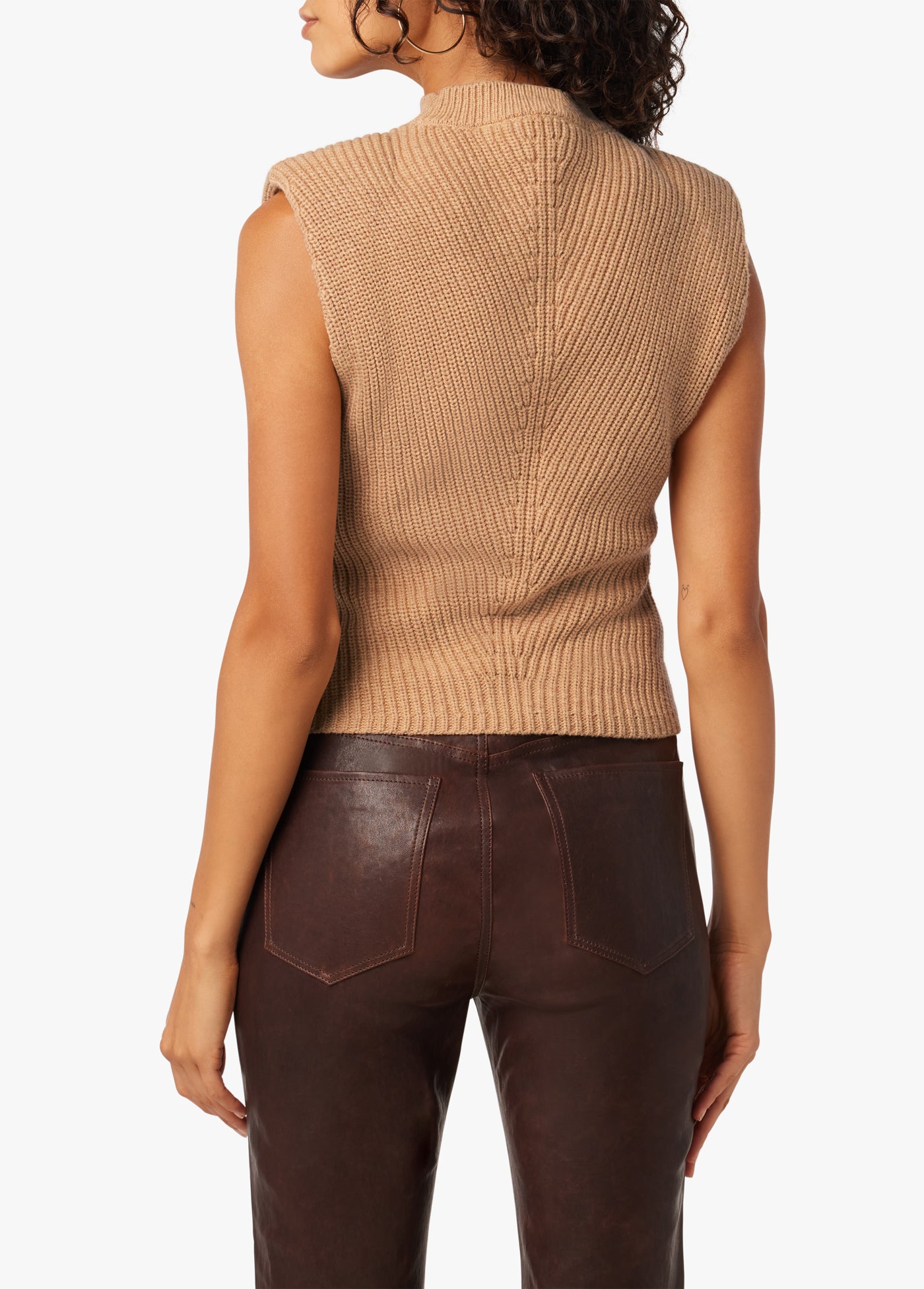 The perfect sleeveless sweater to layer under a blazer or wear on its own. With a mock neck, stitching detail and light shoulder pads, the Moira has both structure and softness.