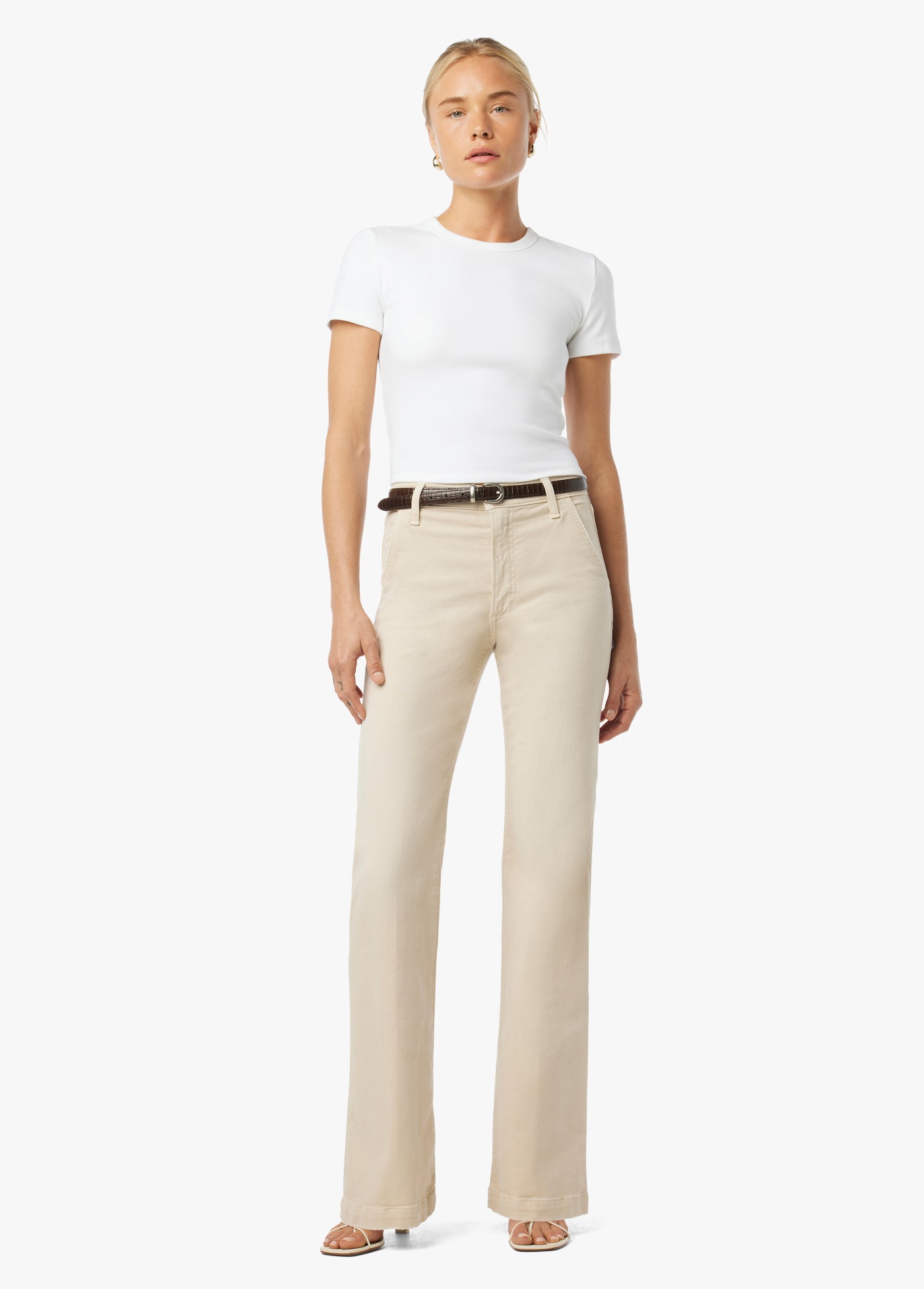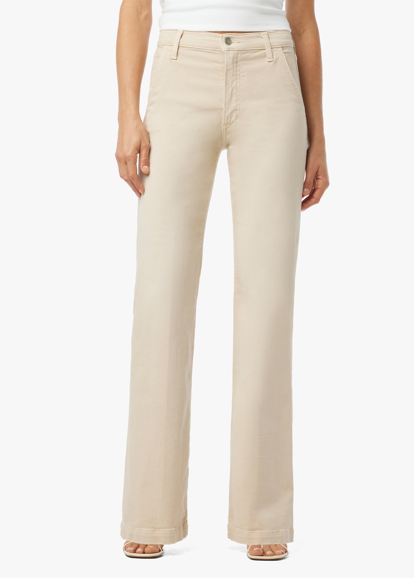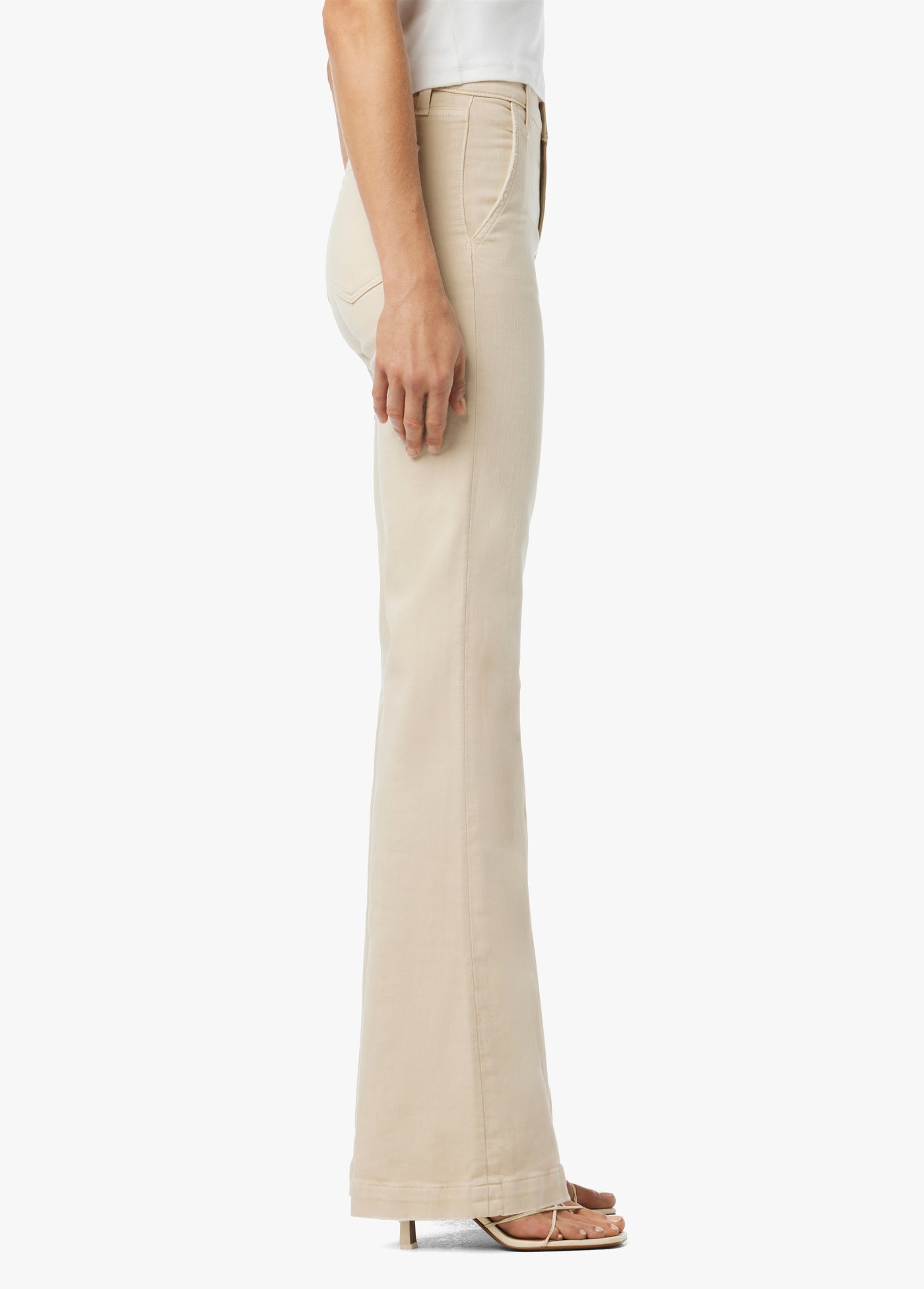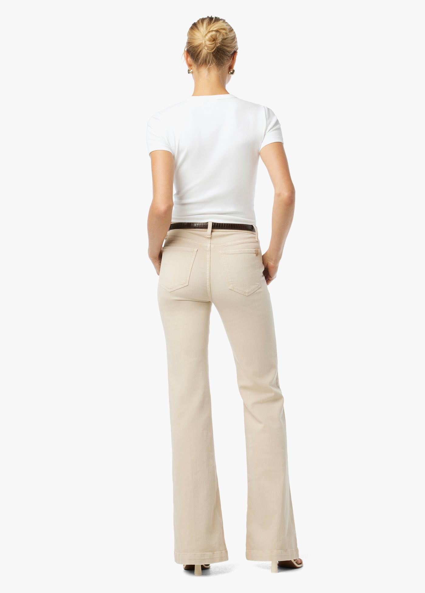 The Molly High-Rise Flare is fitted at the waist and kicked out at the wide hems, creating a curve-hugging ’70s-inspired silhouette. These forever-flattering jeans feature Flawless super stretch denim in a sleek neutral wash, Safari, and are complete with slant front pockets.