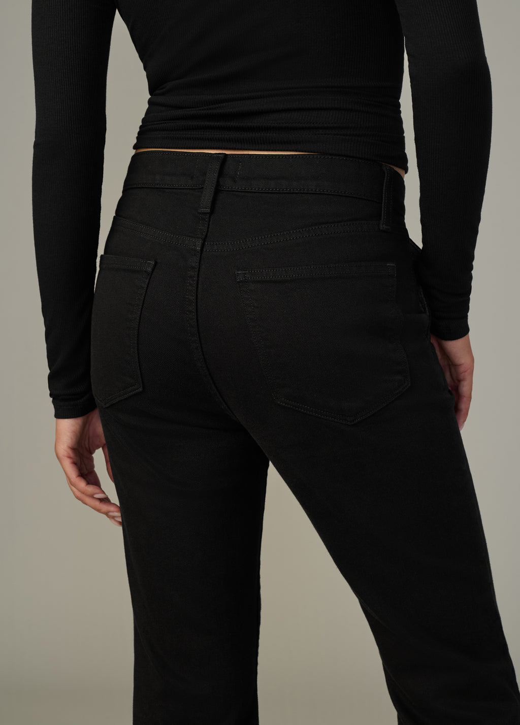 A high rise and slim fit through the waist and hip with a relaxed knee that breaks to a wide flare and is perfectly proportioned for 5'4" and under.