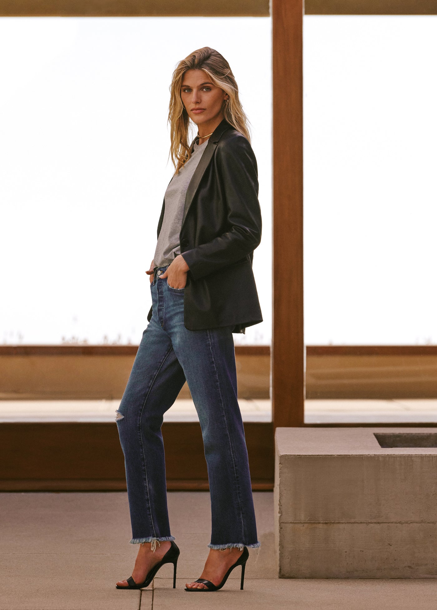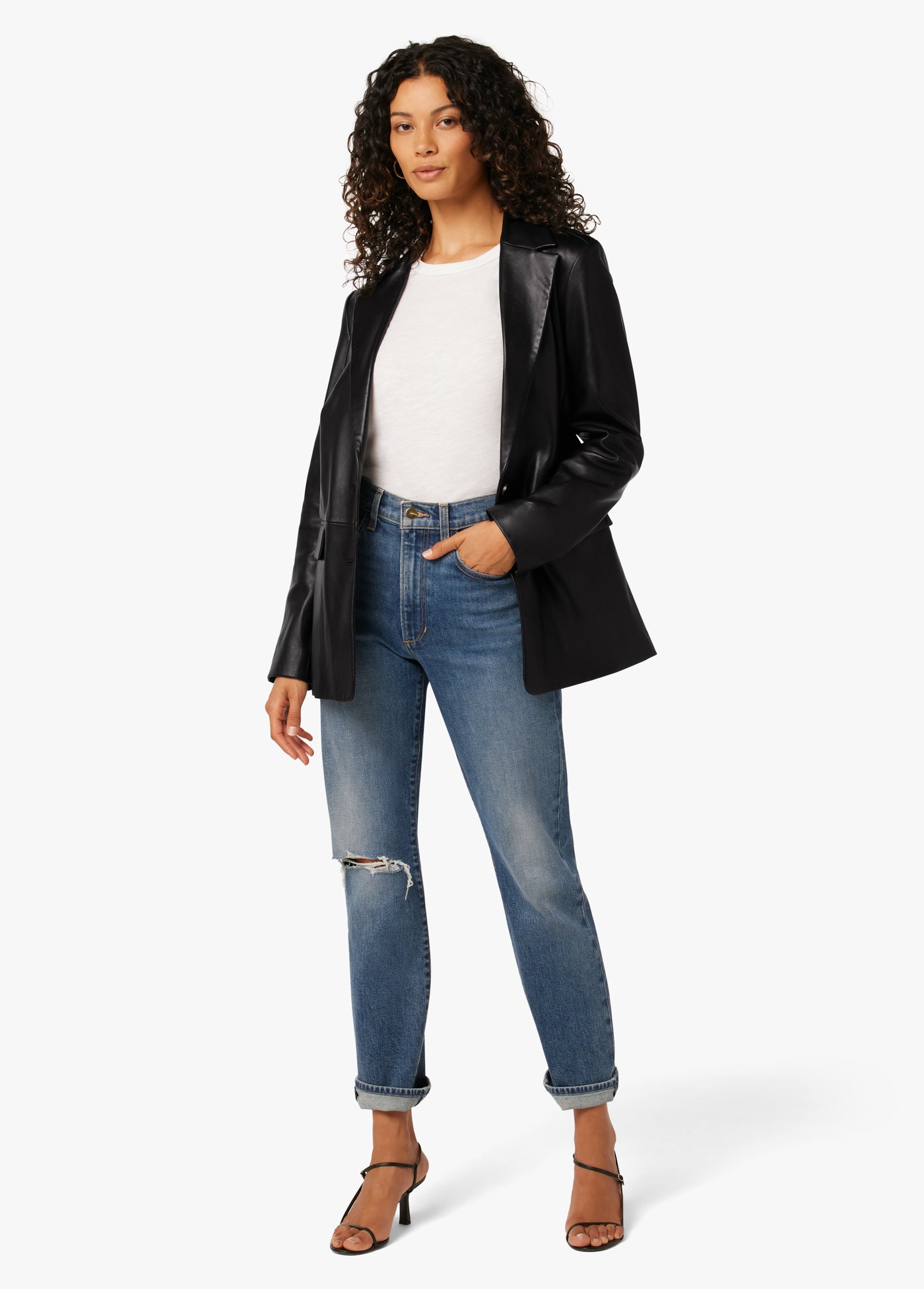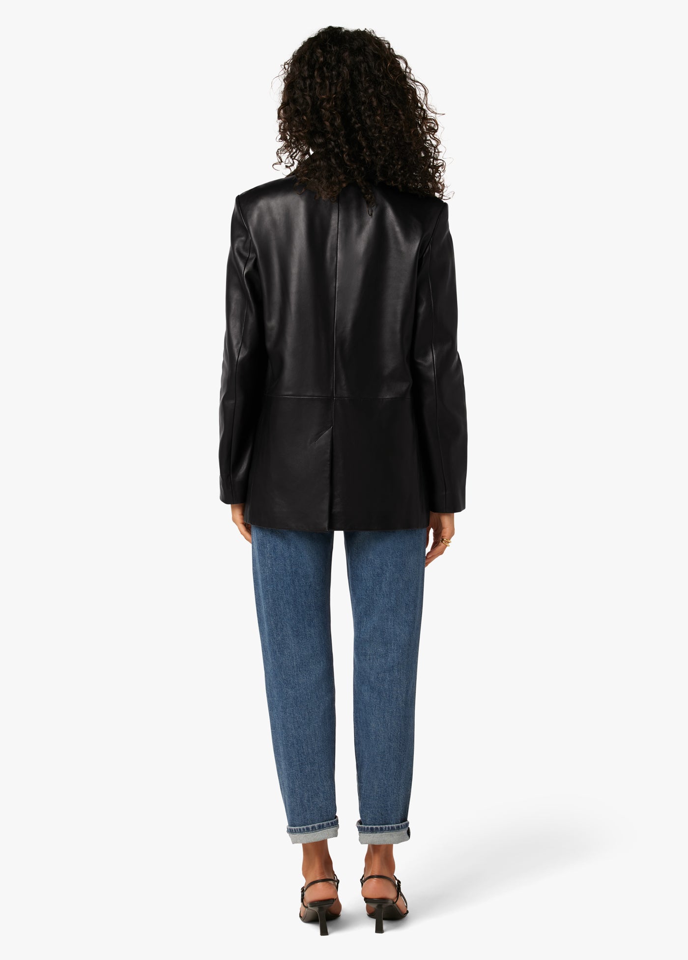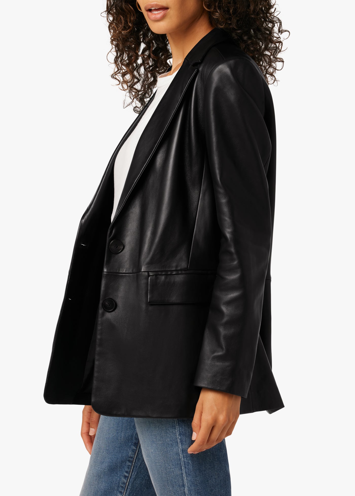 Crafted from beautiful black leather, the Nina Boyfriend Blazer has an easy, slightly oversized fit. With the classic lapel collar and button styling, it's a timeless layering piece that will elevate any outfit.