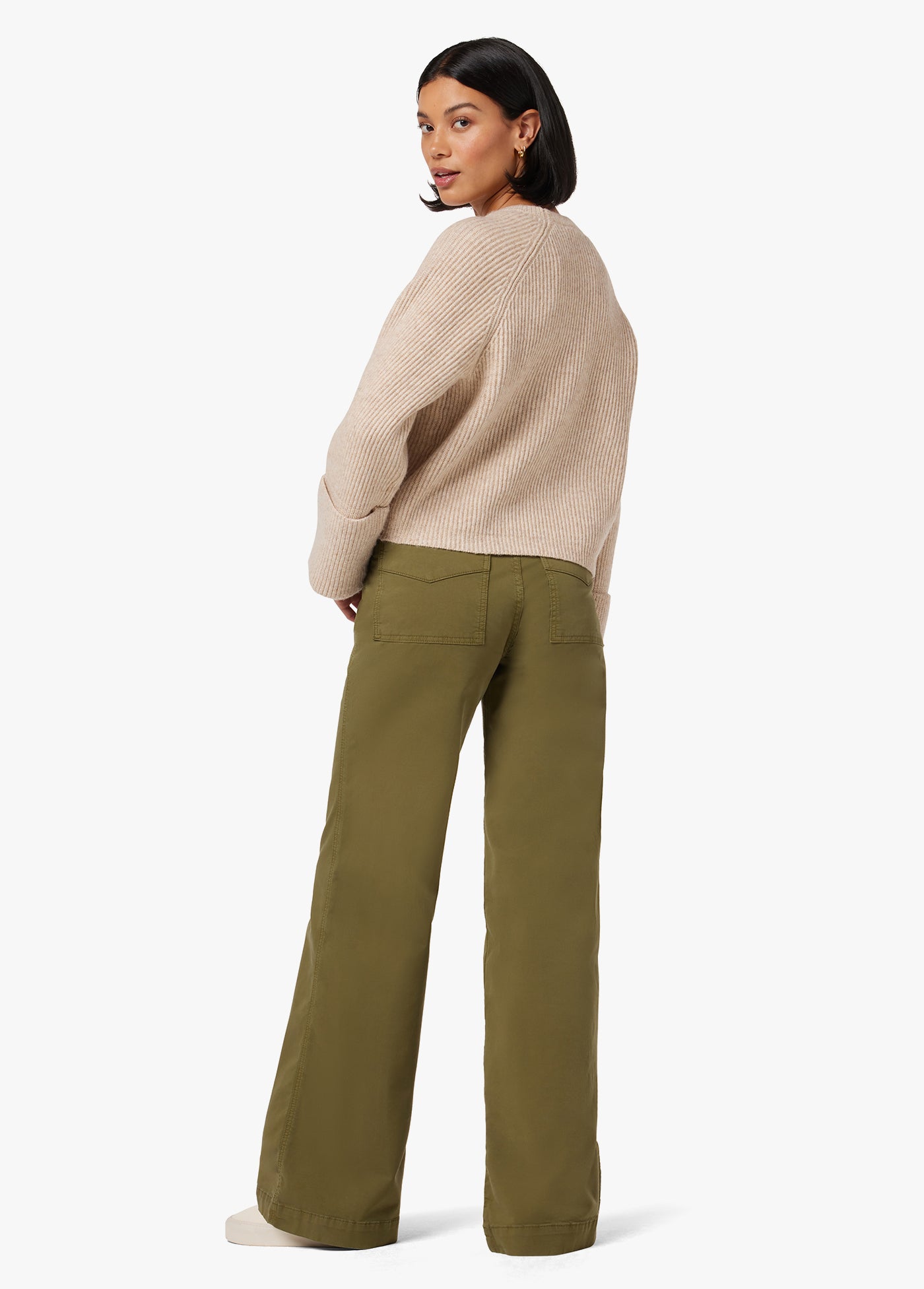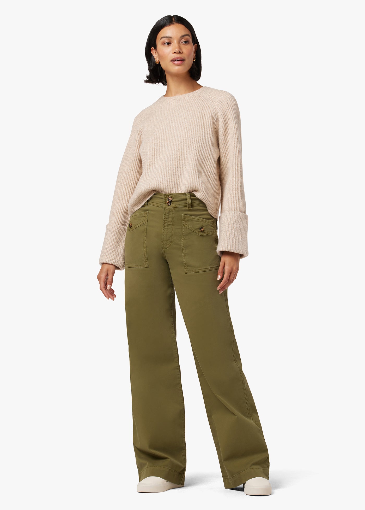 Designed to sit high on the waist with a wide leg, the Premium Cargo Wide Leg is outfitted with oversized front pockets for a polished-yet-utiliarian look. The Burnt Olive is a soft, earthy neutral that elevates these cargos--making these comfort non-denim pants perfect for work days or weekends.