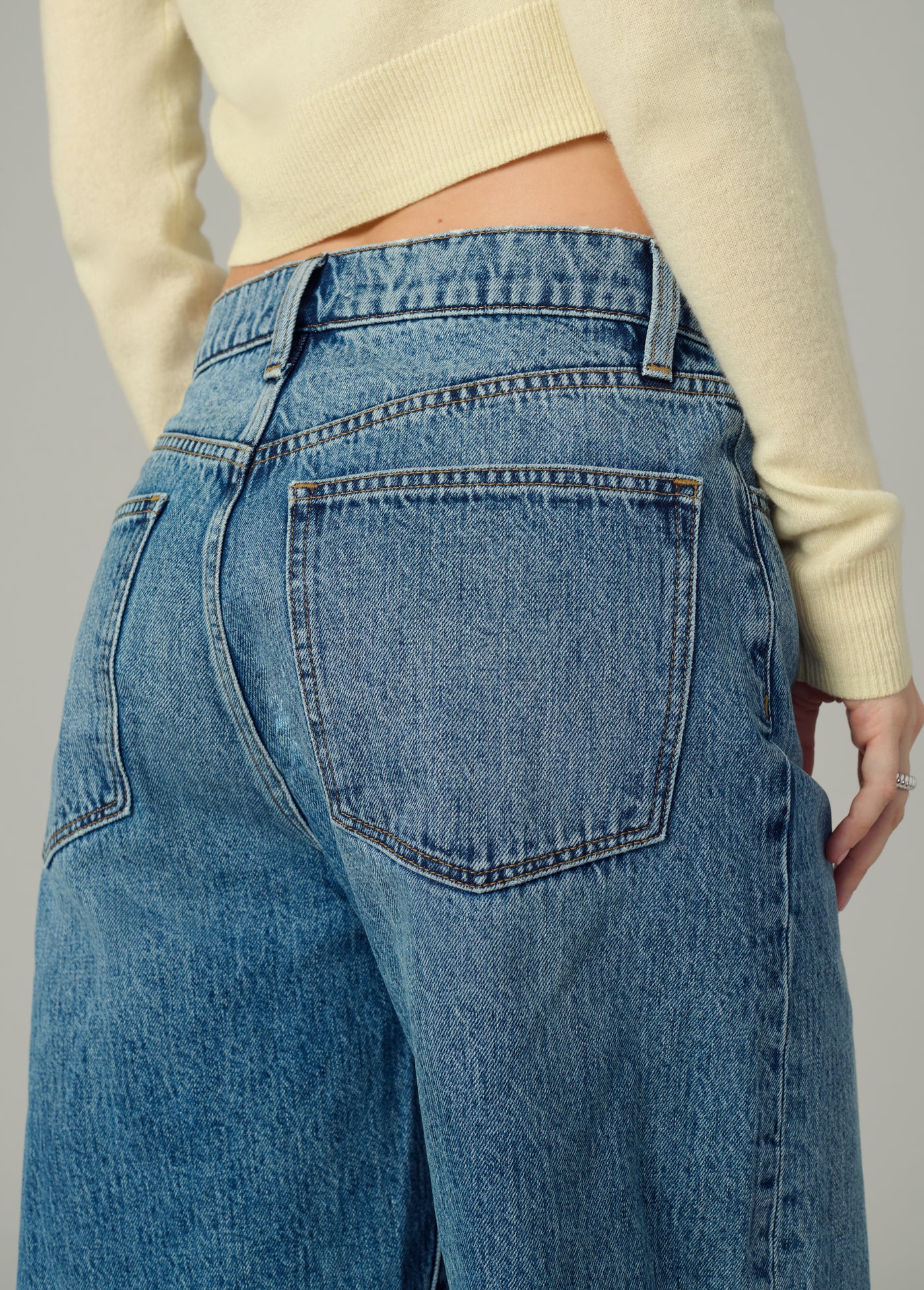 WASH: Subliminal is a timeless medium-indigo wash with vintage-inspired wear patterns at the hem.