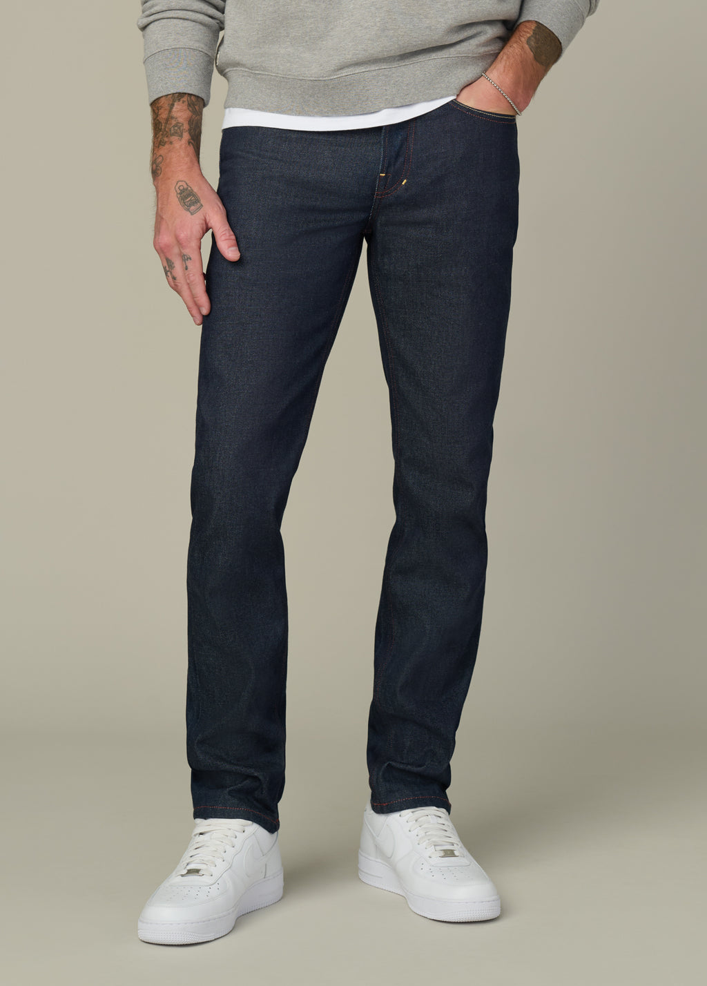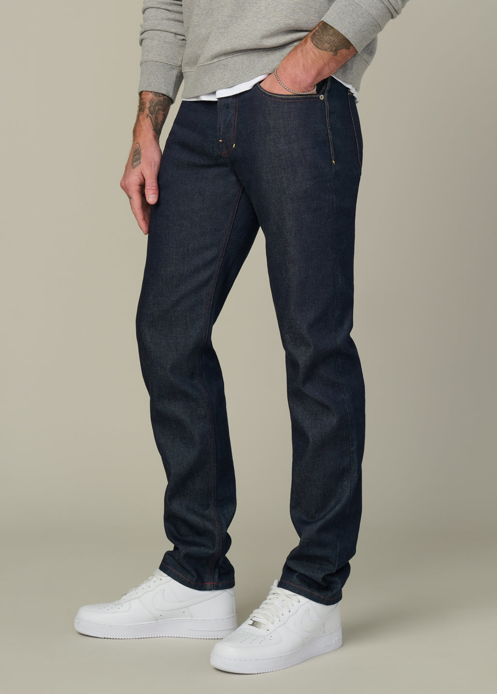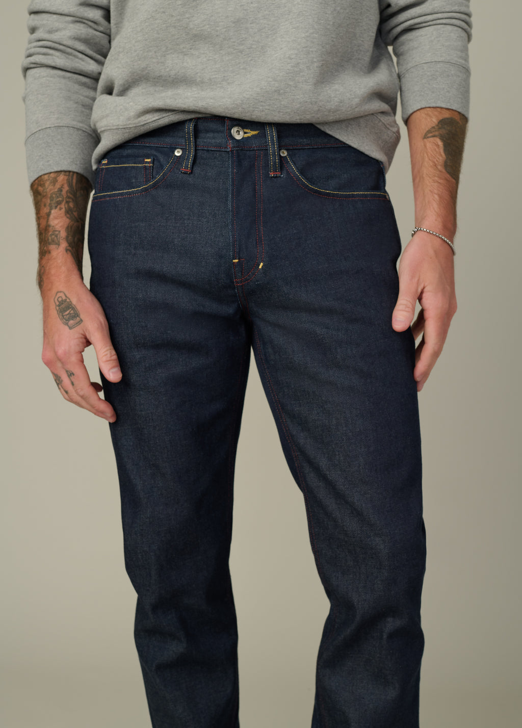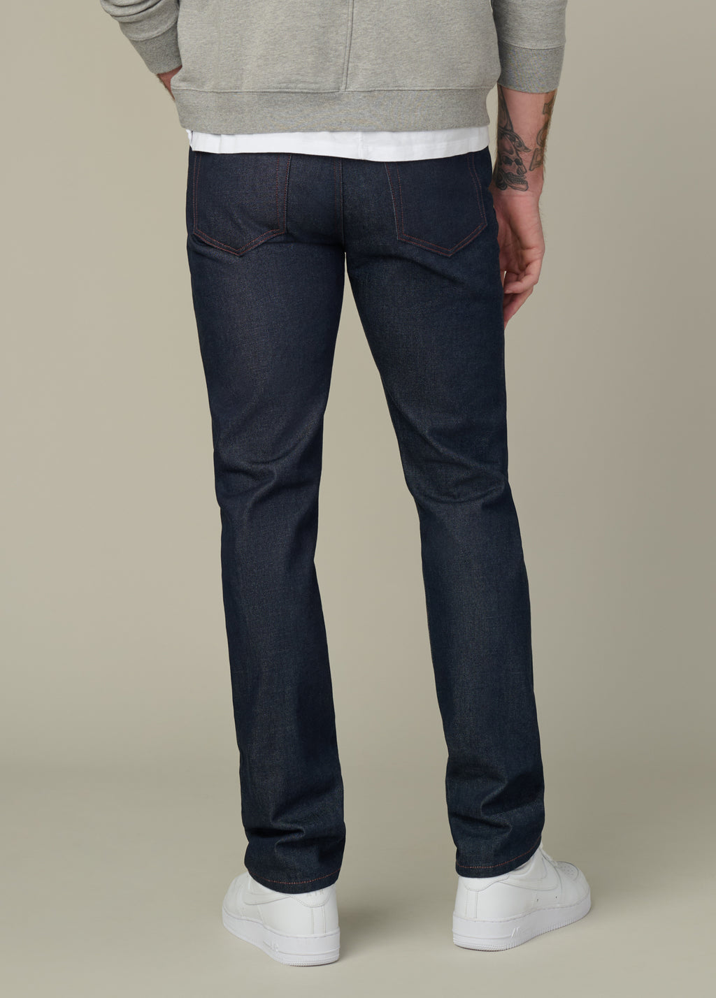 WASH: Pine is a dark indigo, featuring unwashed, raw denim in its purest form that develops character through wear over time.