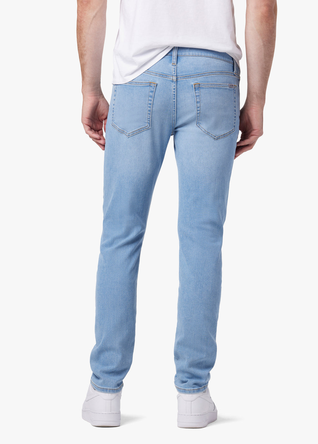 Slim fit through the thigh to knee with a mid rise and narrow leg opening.