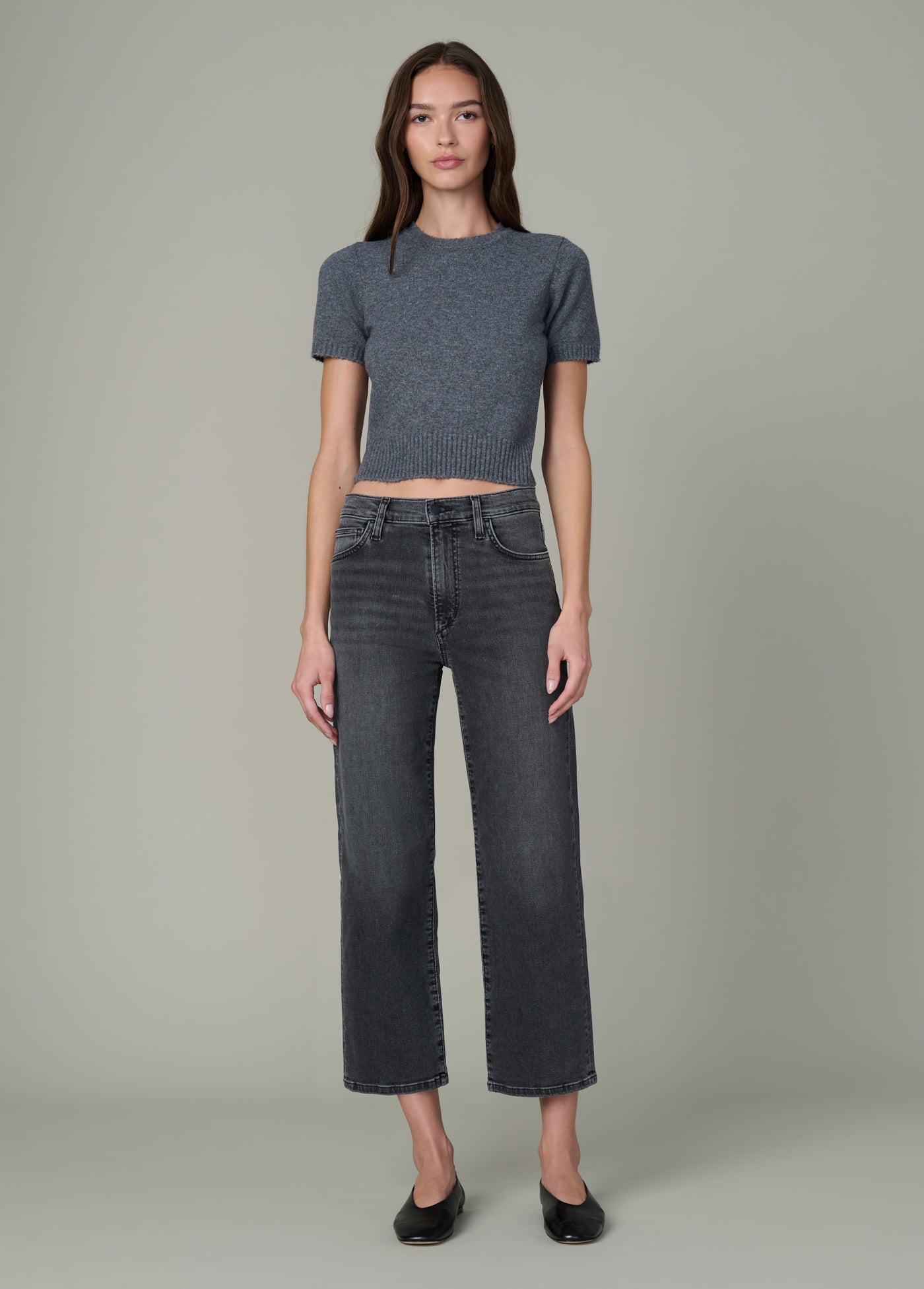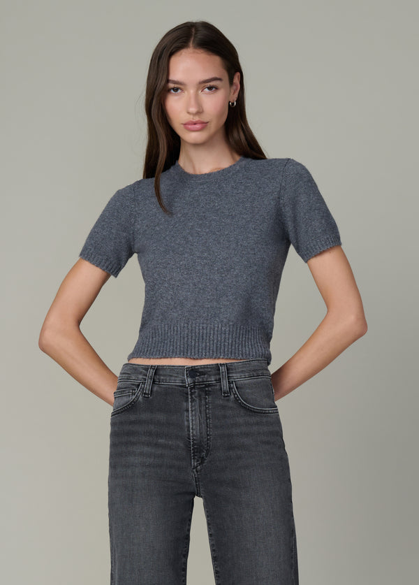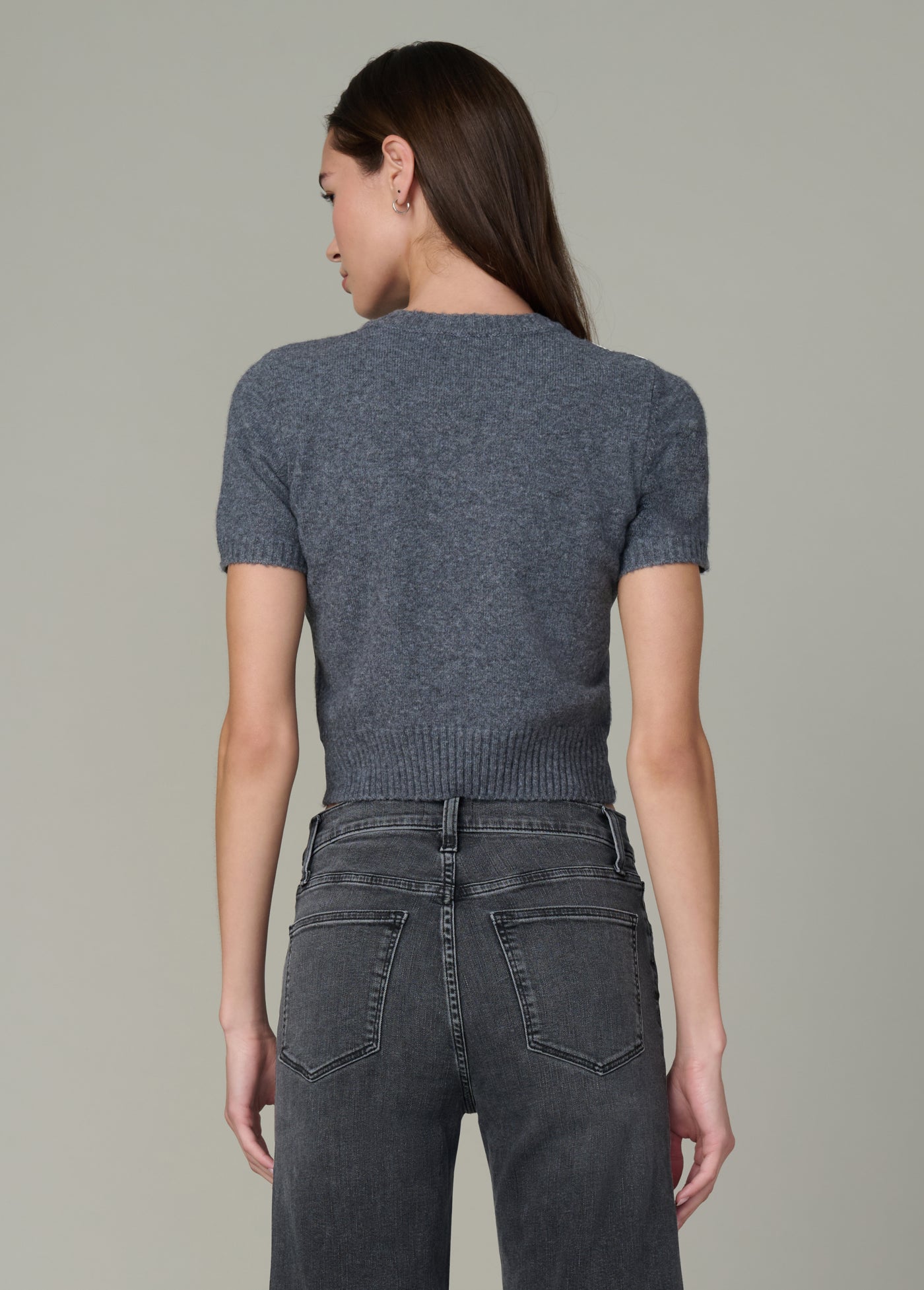 A transitional short-sleeved sweater in a cozy brushed yarn.