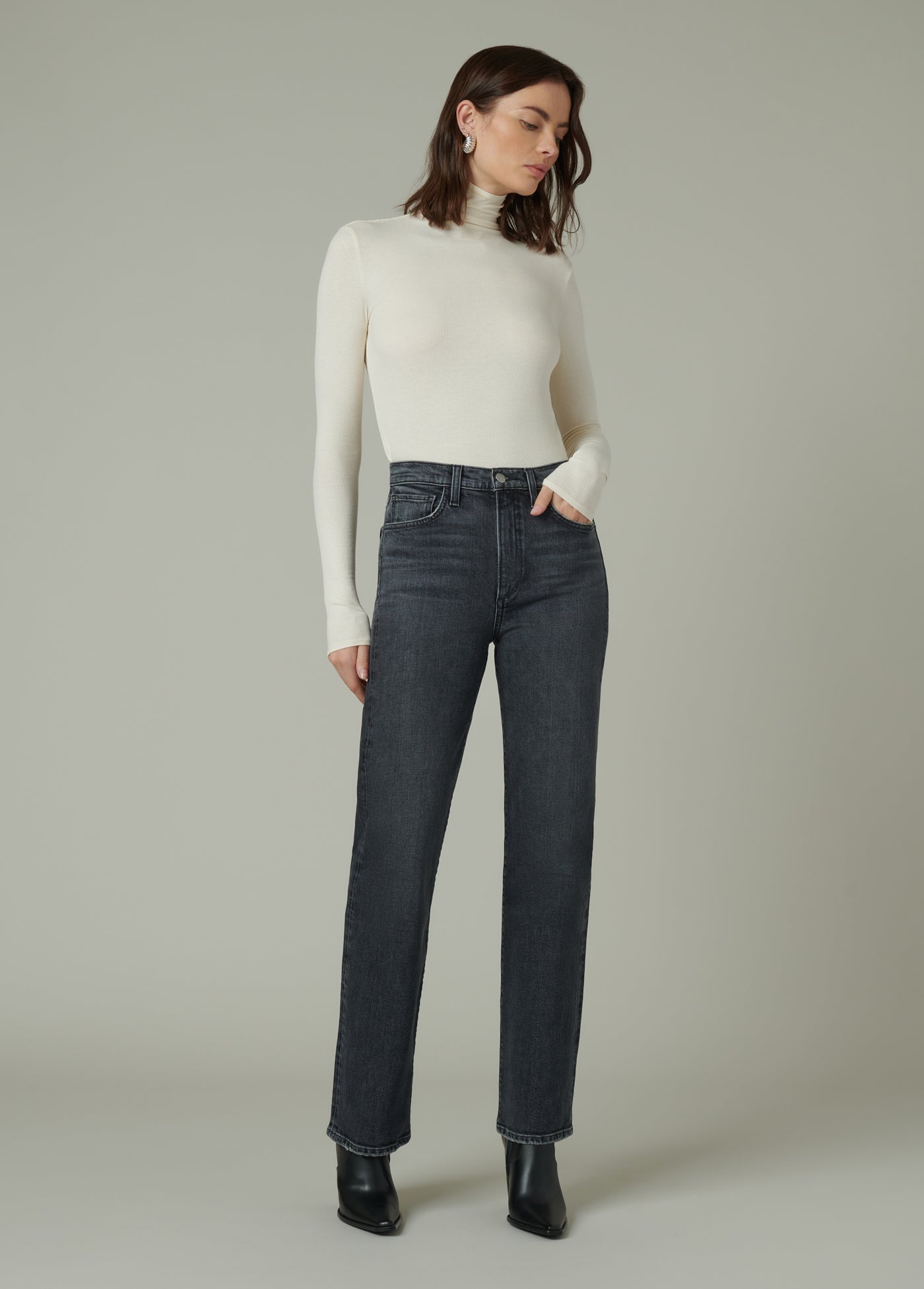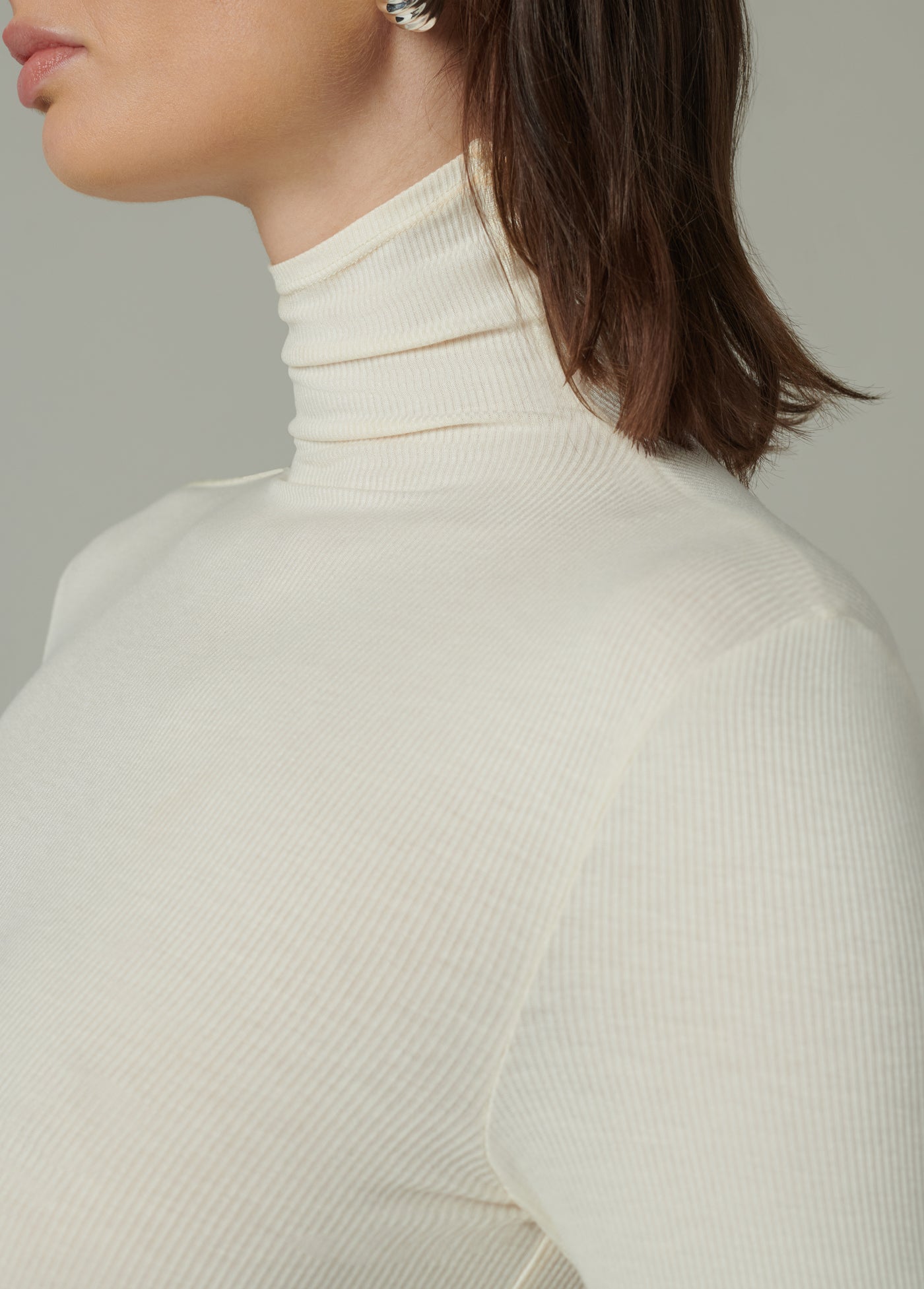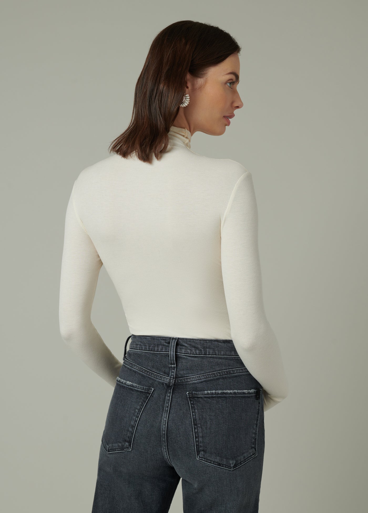 Long sleeve funnel neck top in a fitted silhouette - the perfect layer.