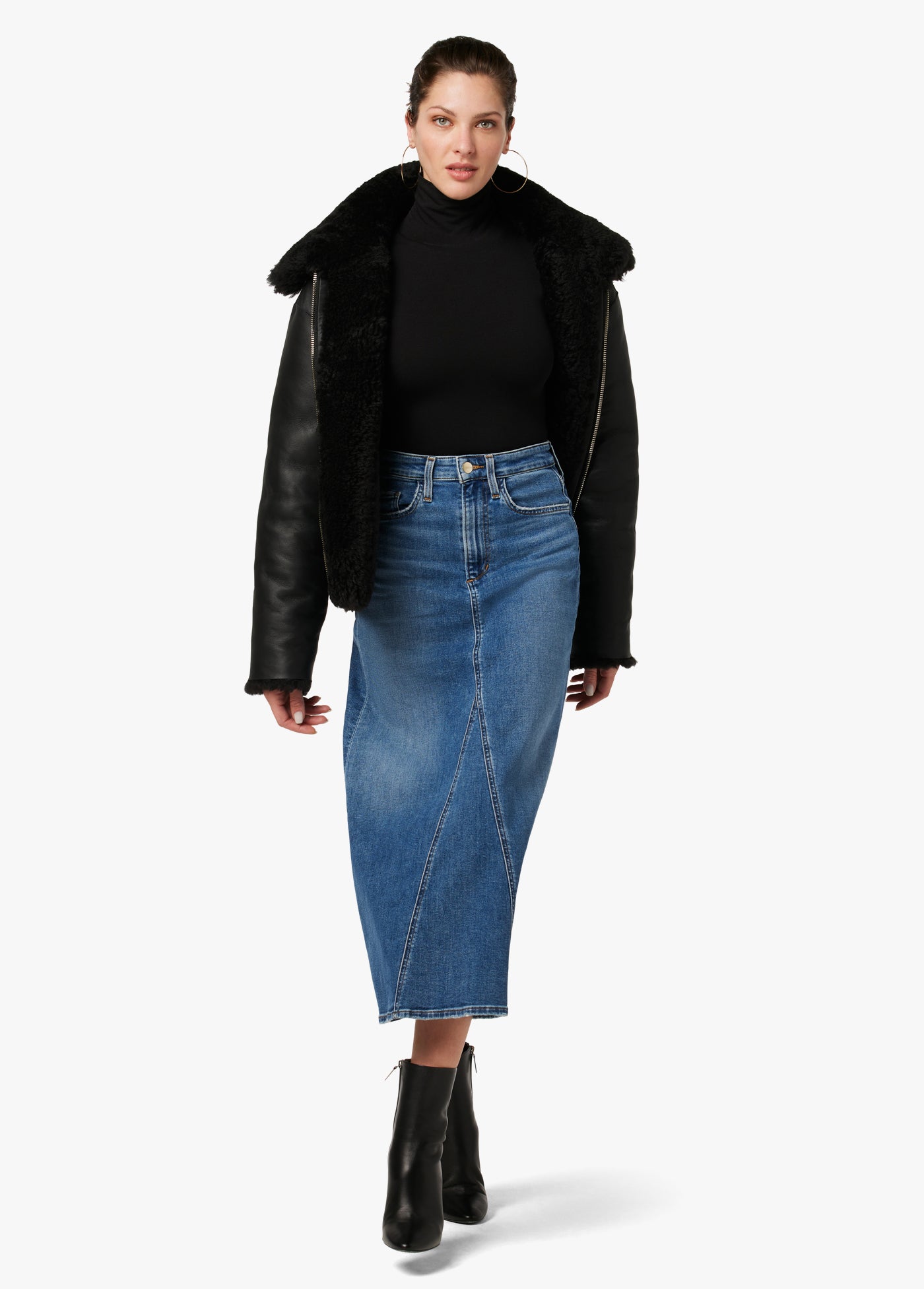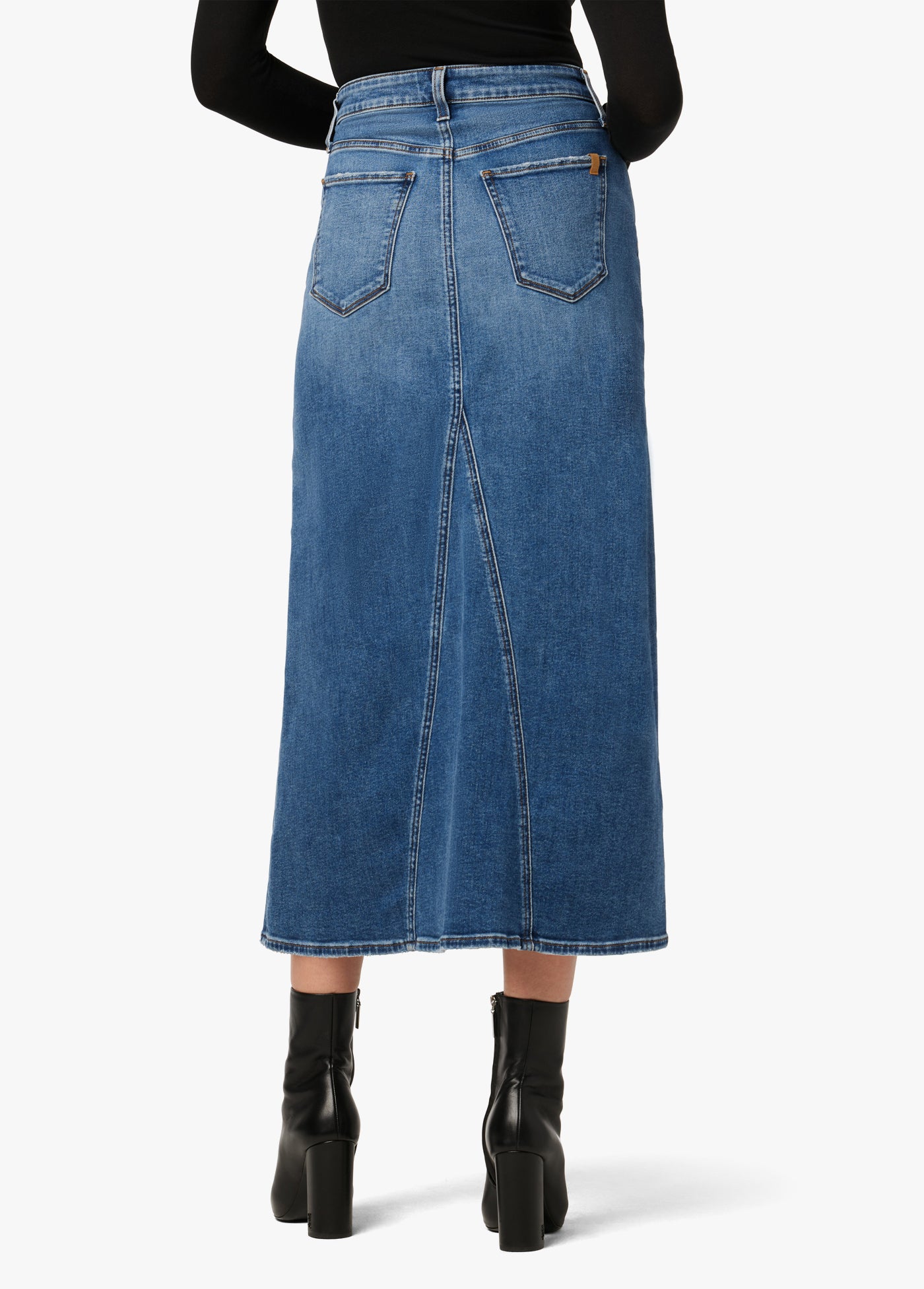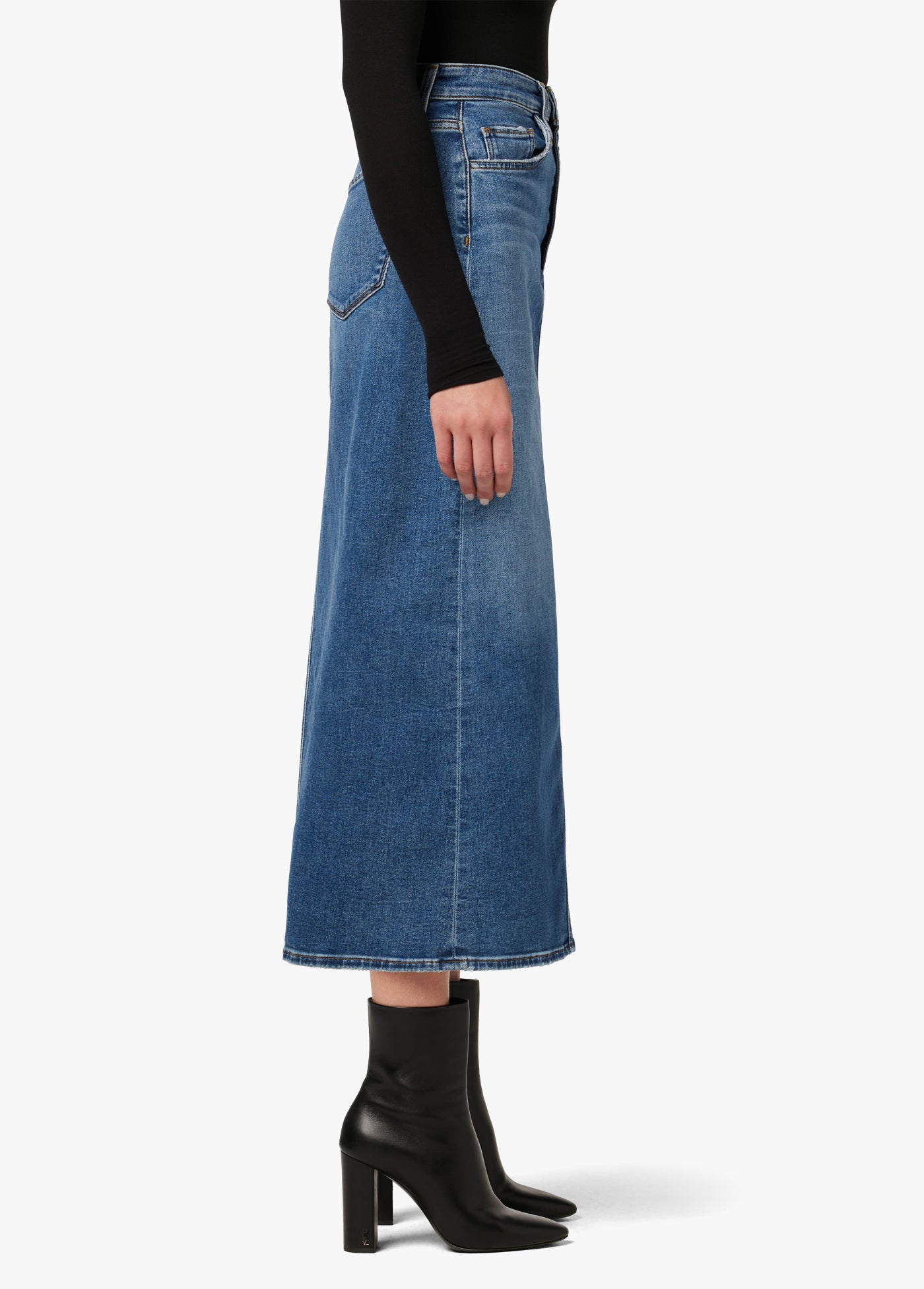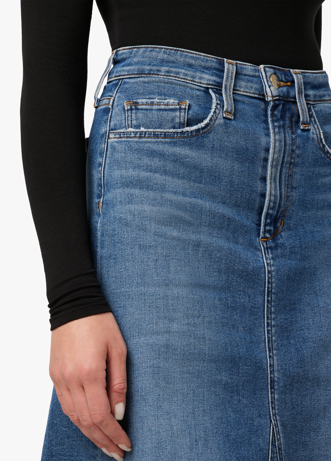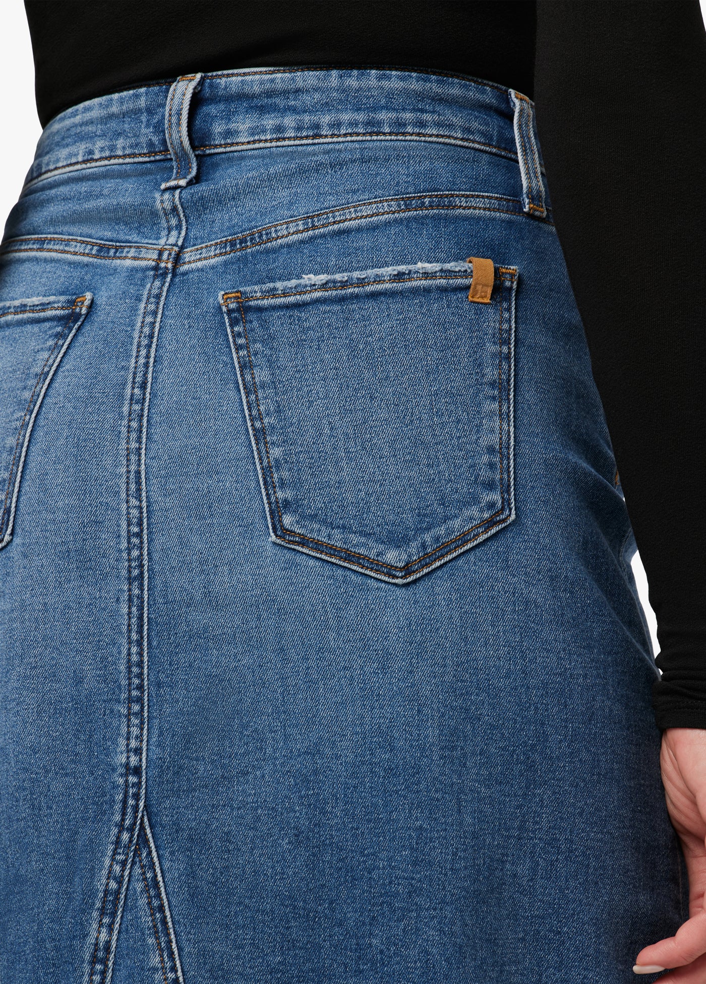 Cut in the perfect midi length, the Tulie in Dazzling will be your year-round, work-to-play skirt. It's a medium-indigo shade with a hint of whiskering, giving this new denim a timeless touch.