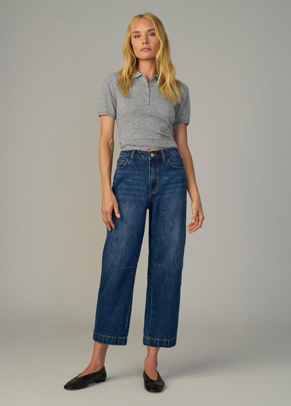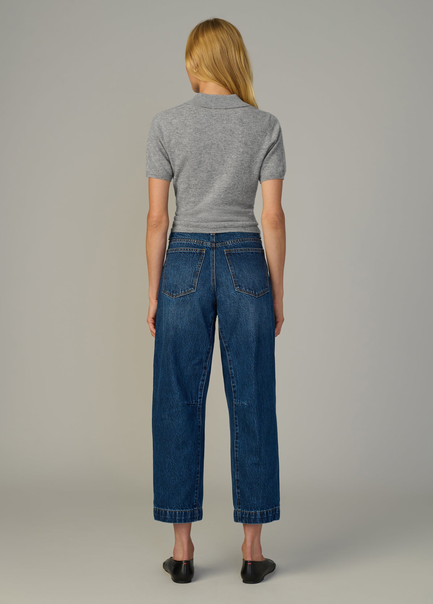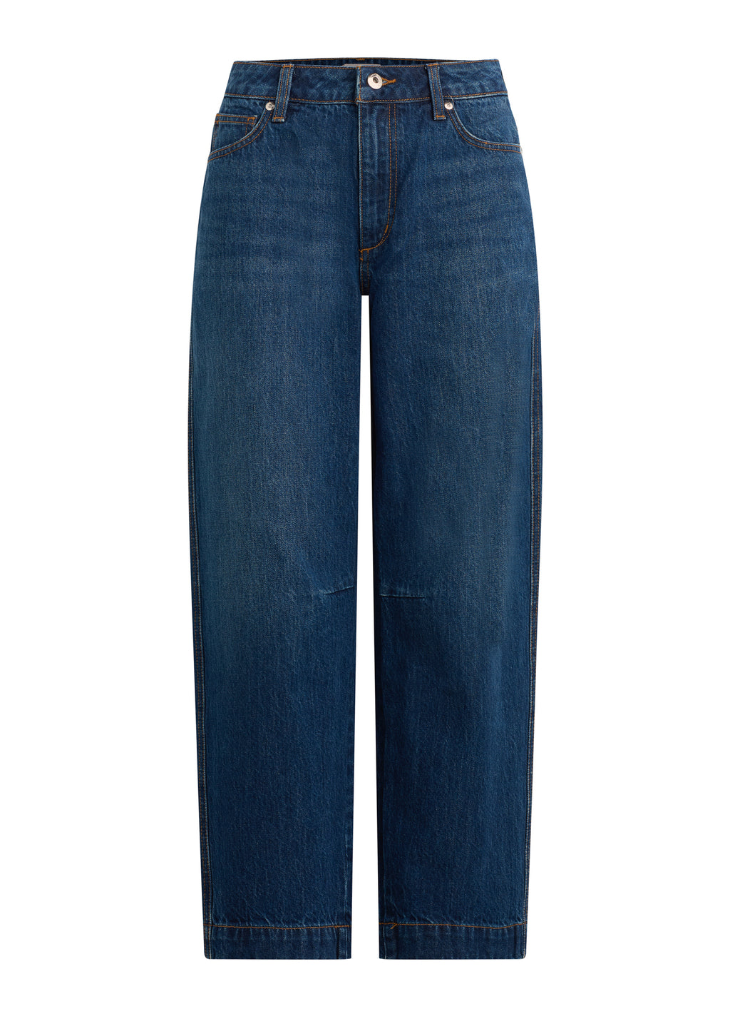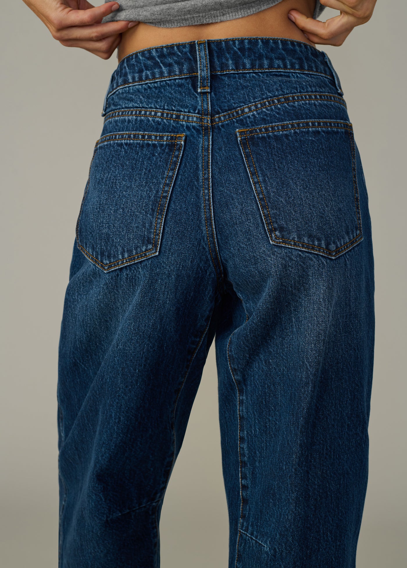 A relaxed rise and an easy fit through the waist and hip with an inseam gusset and barrel-shaped leg that hits at the ankle.